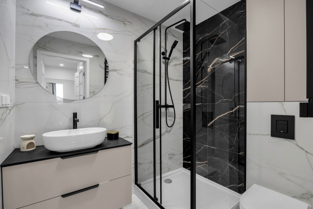 – łazienka z prysznicem,