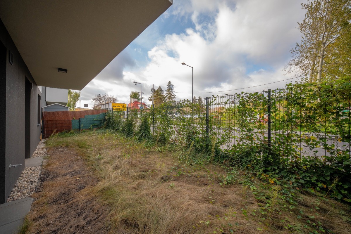 – przestronną część dzienną łączącą salon z aneksem kuchennym, z wyjściem do prawie 40 m2 ogródka