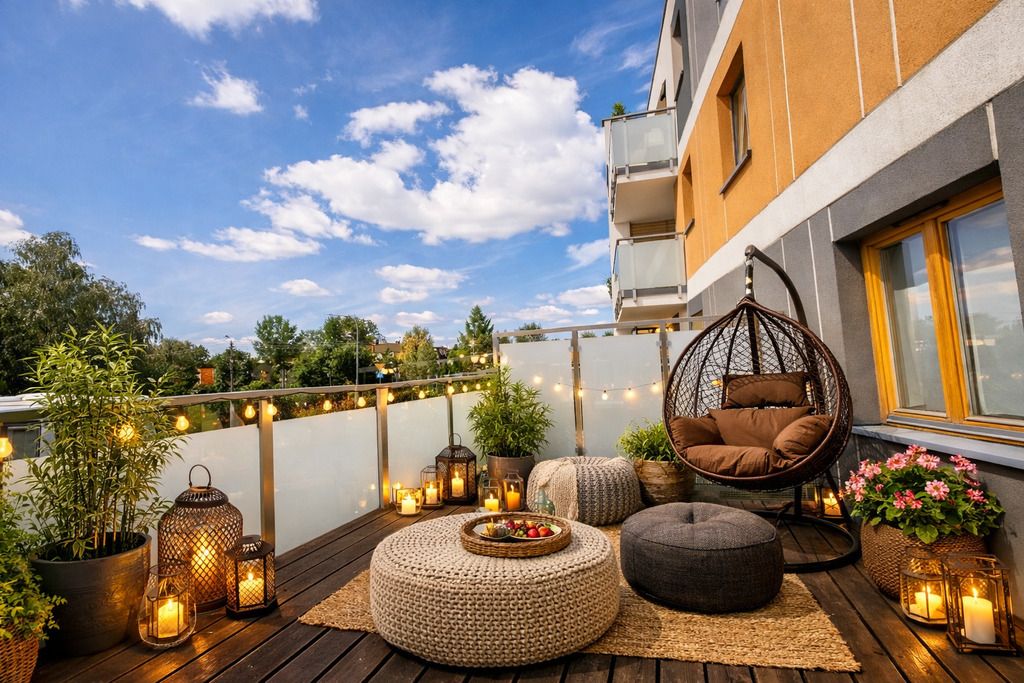 Poranna kawa w słońcu, rośliny na tarasie i długie, spokojne letnie wieczory na świeżym powietrzu. Ten 40-metrowy taras dostępny z każdego pokoju sprawia, że mieszkanie żyje nie tylko wewnątrz, ale także na zewnątrz.