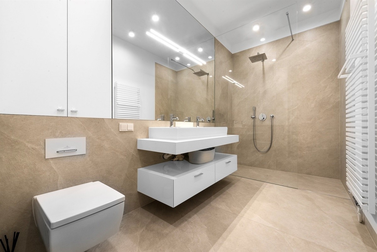 Materiały, którymi wyposażono nieruchomość to światowej klasy, naturalne surowce. Wszystkie zabudowy wykonano na zamówienie u najlepszych lokalnych stolarzy i rzemieślników. Kuchnia to dzieło włoskiego producenta ArcLinea z osprzętem Gaggenau a wysokie i zlicowane ze ścianami drzwi pochodzą od firmy Lualdi.