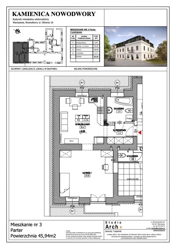 i lokal mieszkalny o pow. 26 m2 (wejście z klatki schodowej od strony patio).