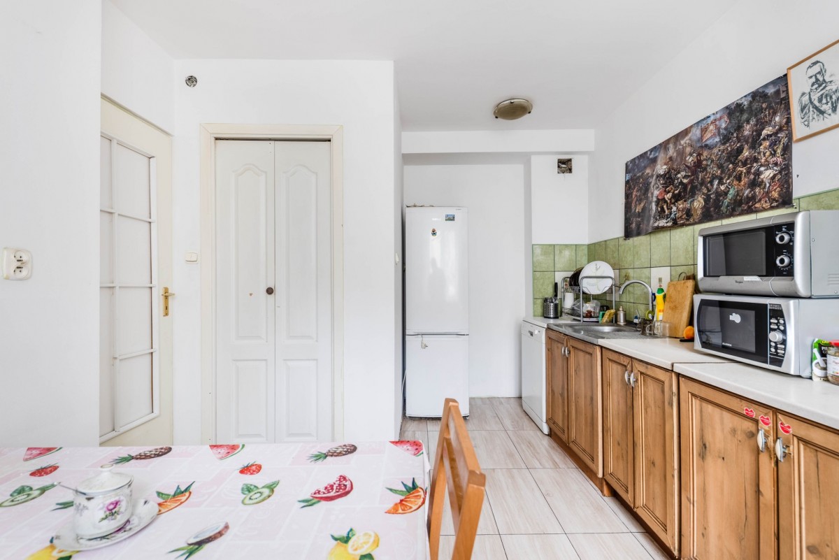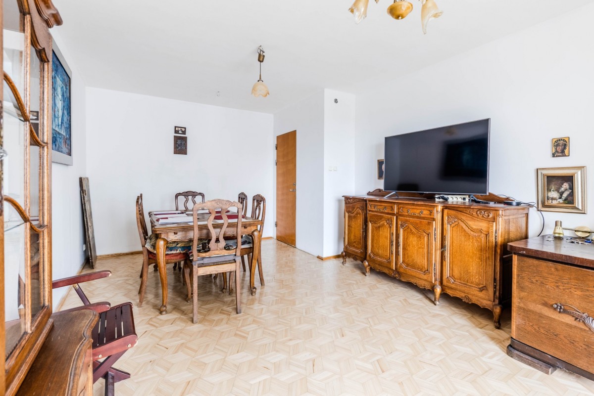 Mieszkanie z potencjałem na pierwszym pietrze w niskim 3 piętrowym budynku. Szerokie klatki schodowe. Powierzchnia ma 110 mkw, mieszkanie bezprogowe, podłoga parkiet złoty jesion, modrzewiowe okna. Mieszkanie składa się z 5 pokoi, w tym duży salon z balkonem, 4 sypialnie – jedna bardzo duża z balkonem, 2 garderoby, osobna kuchnia z oknem i spiżarnią, duża łazienka z wanną, druga łazienka z prysznicem. Do mieszkania przynależą 2 miejsca parkingowe – każde po 11.5 mkw w podziemnym garażu oraz komórka lokatorska 7 mkw – dwa garaże i komórka lokatorska w cenie 110 tys. zł