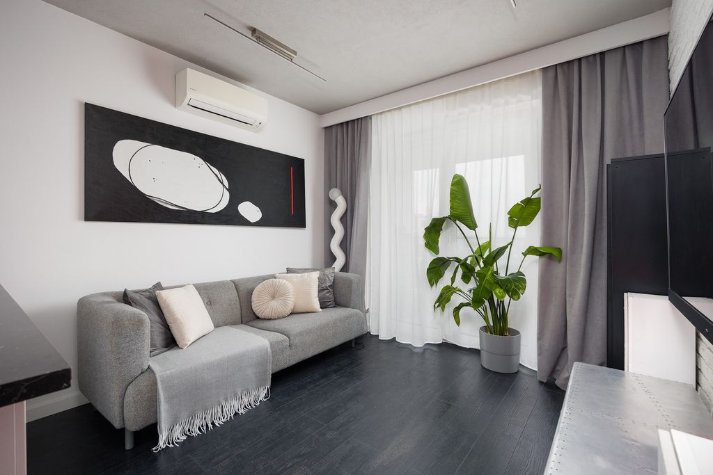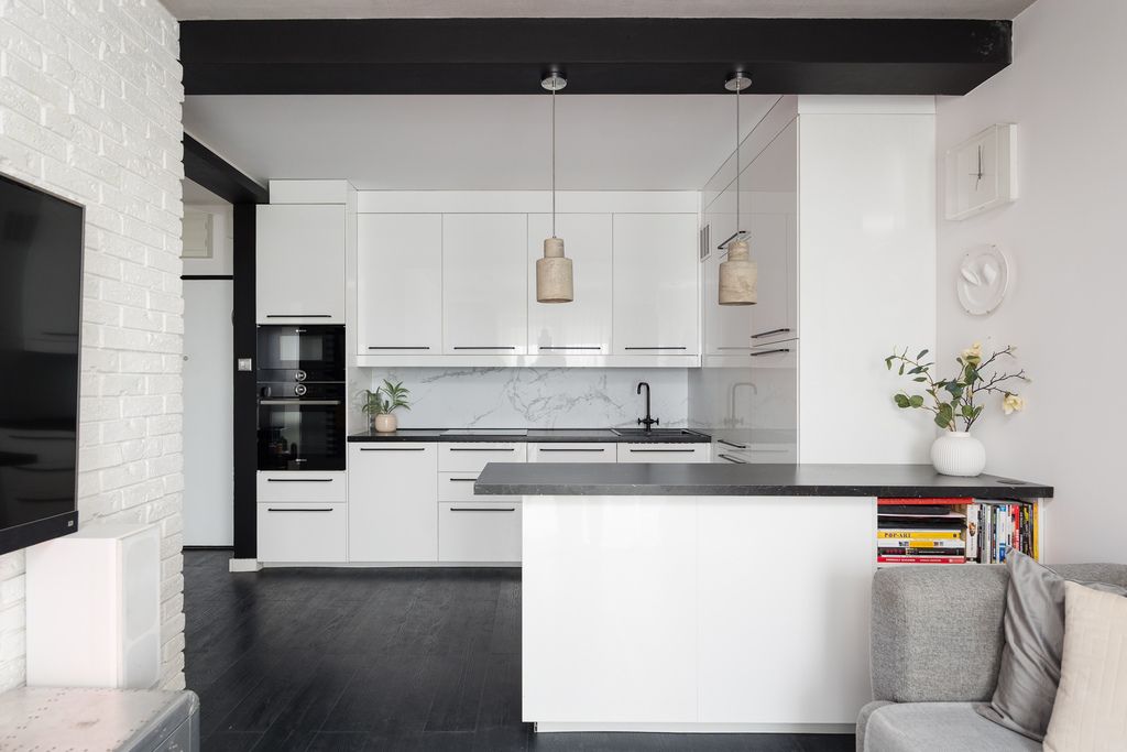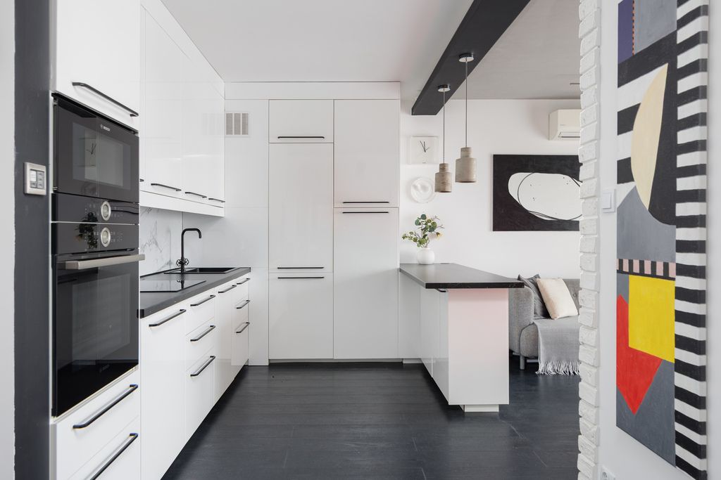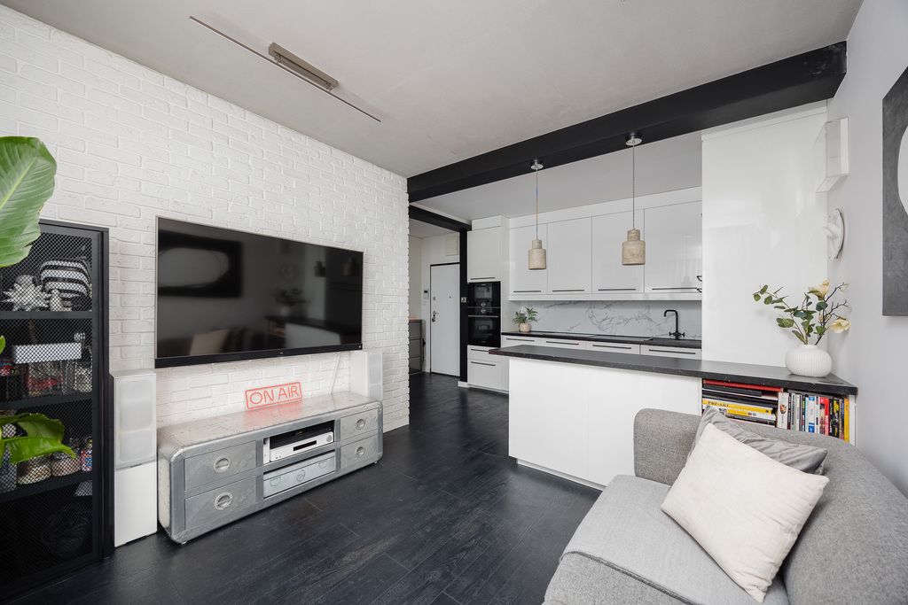Lokal został wykończony w wysokim standardzie, z dbałością o detale i funkcjonalność przestrzeni. Mieszkanie jest w pełni umeblowane, a zabudowy wykonane na wymiar pozwalają maksymalnie wykorzystać każdy metr kwadratowy. Jasna kolorystyka oraz przemyślane oświetlenie nadają wnętrzu nowoczesny i elegancki charakter.