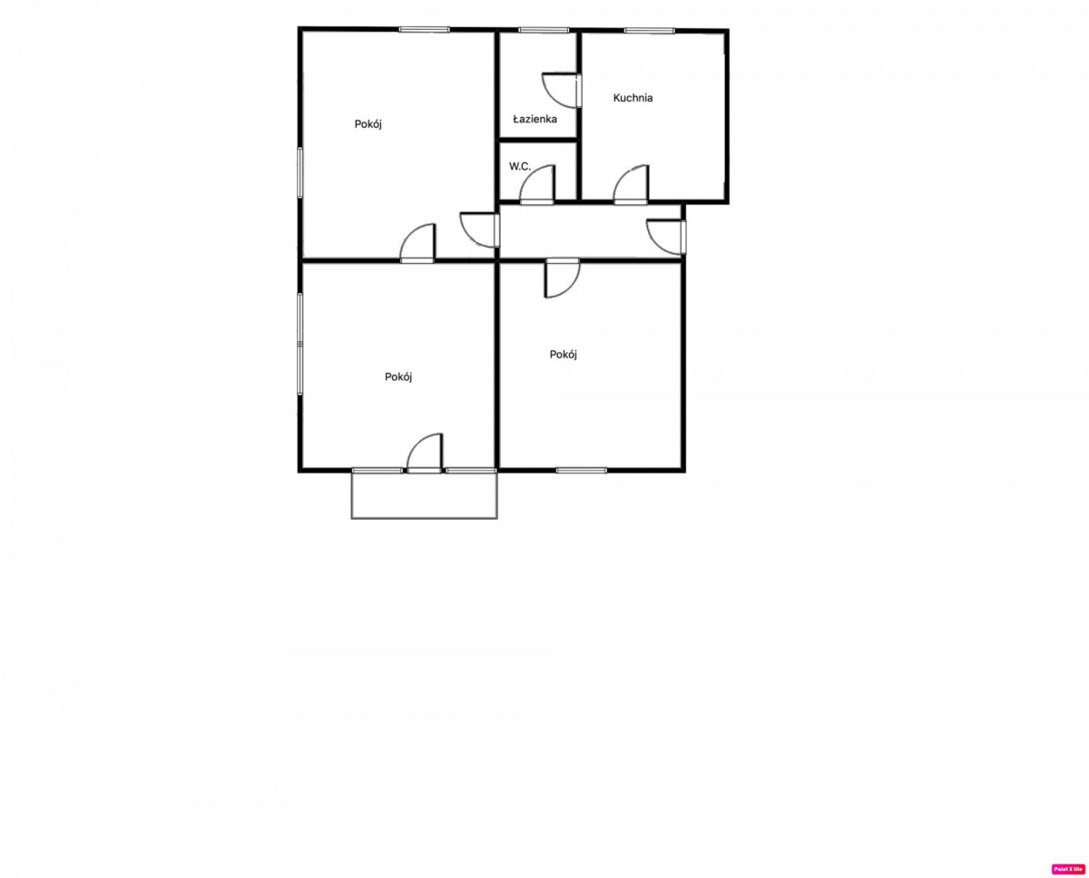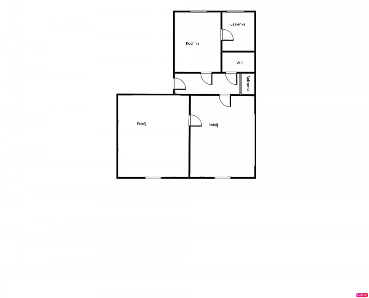 1. na parterze – lokal mieszkalny 55 m2 (2 pokoje)