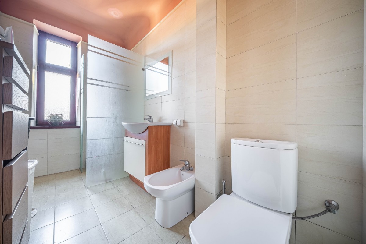 4. w piwnicy znajduje się kotłownia, wc, pralnia i 6 pokoi. Pomieszczenia w b. dobrym stanie, suche z oknami. Kiedyś była prowadzona działalność gospodarcza. Jest oddzielne wejście z podwórka.