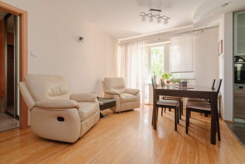 Mieszkanie przy ul. Mickiewicza 64 w Warszawie znajduje się w zielonej i spokojnej okolicy na pograniczu Żoliborza i Bielan, w sąsiedztwie Parku im. Stefana Żeromskiego i licznych terenów rekreacyjnych. Lokalizacja zapewnia świetną komunikację – w pobliżu znajdują się przystanki autobusowe i tramwajowe, a do stacji metra Młociny można dojść w kilka minut. W okolicy dostępne są liczne placówki edukacyjne, przychodnie, apteki, sklepy i restauracje. Dodatkowym atutem są place zabaw, siłownie plenerowe i brak strefy płatnego parkowania.