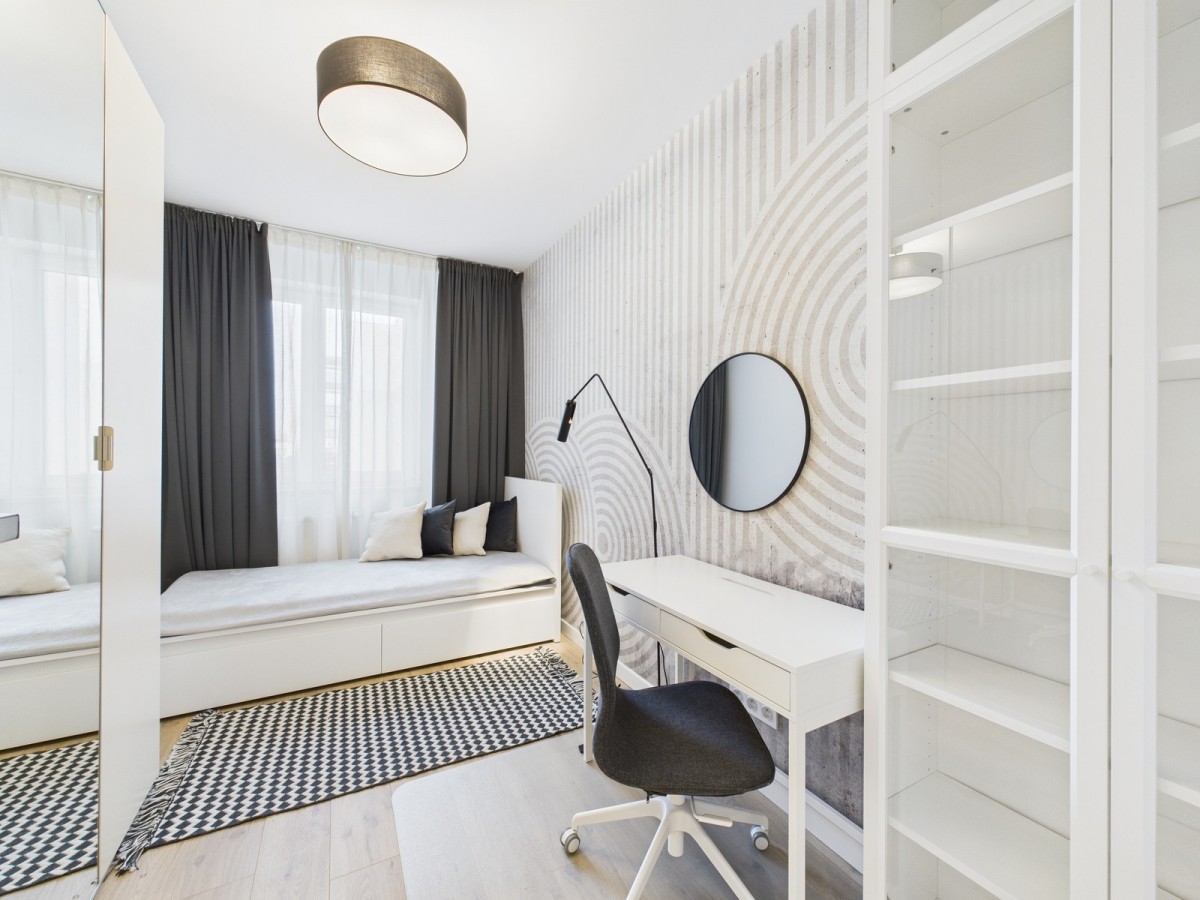Mieszkanie znajduje się w dobrze skomunikowanej, spokojnej okolicy. Do najbliższej stacji metra jest około 8-10 minut spacerem, co zapewnia szybki dojazd do centrum i innych części miasta. W pobliżu dostępne są liczne sklepy, punkty usługowe oraz tereny zielone. Okolica jest przyjazna rodzinom – znajdują się tu szkoły, przedszkola i żłobki, a także wiele udogodnień ułatwiających codzienne życie.