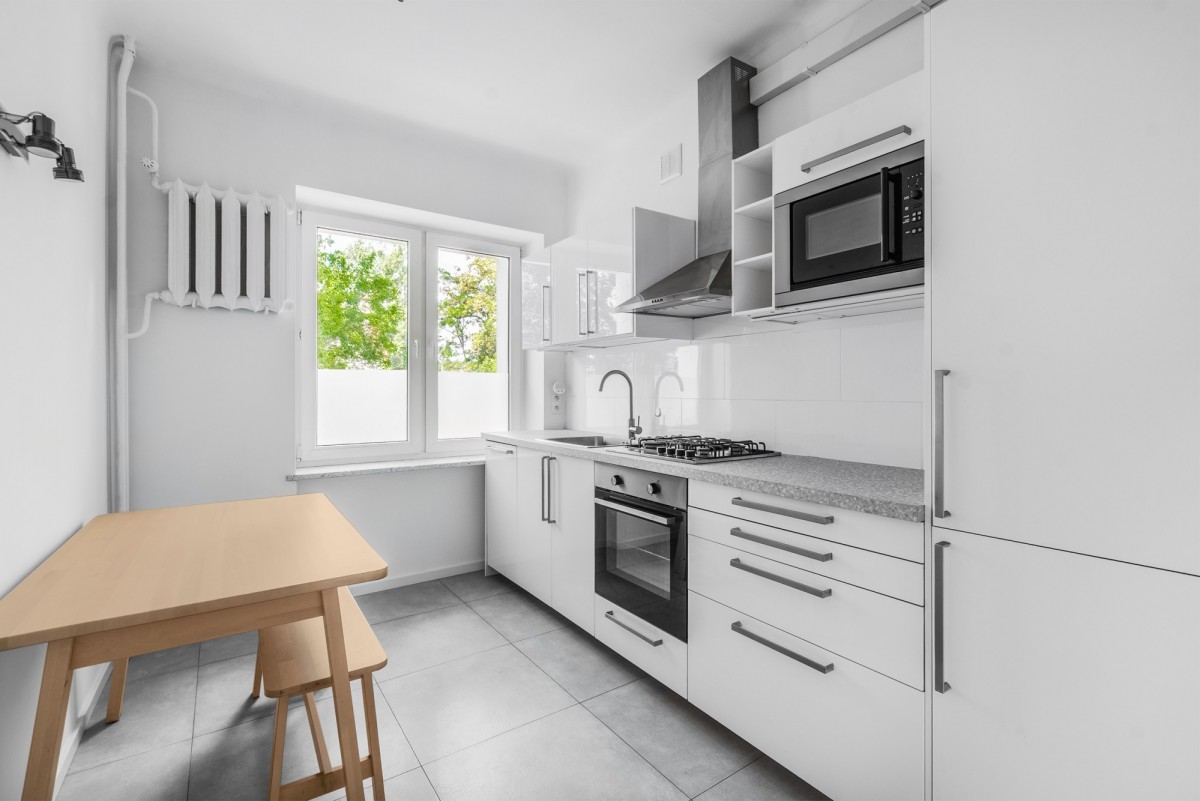 The apartment is located on the 3rd floor of a 5-story building from the 1950s, built of brick. The staircase after renovation, the building in good technical condition, quiet neighborhood. The location provides excellent access to public transport and infrastructure: