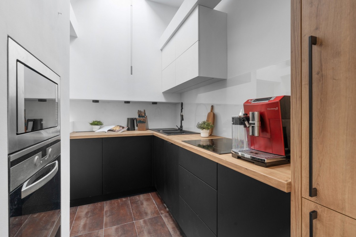 - kompleksowy remont kuchni: nowa zabudowa meblowa na zamówienie wykonana przez stolarza, nowa lodówka, nowy zlew i bateria, nowa płyta indukcyjna (z możliwością zmiany na gazową), hartowane szkło na ścianach wykonane na zamówienie oraz nowy komplet oświetlenia LED,