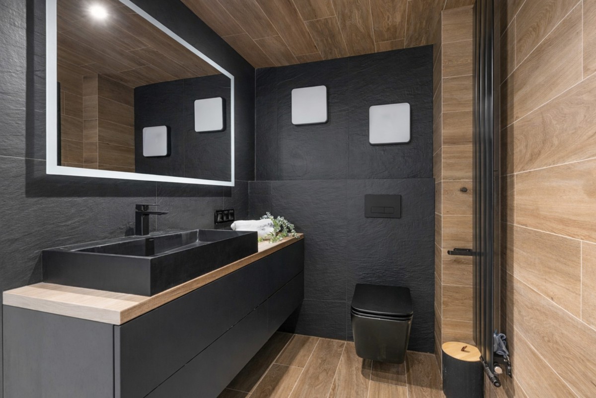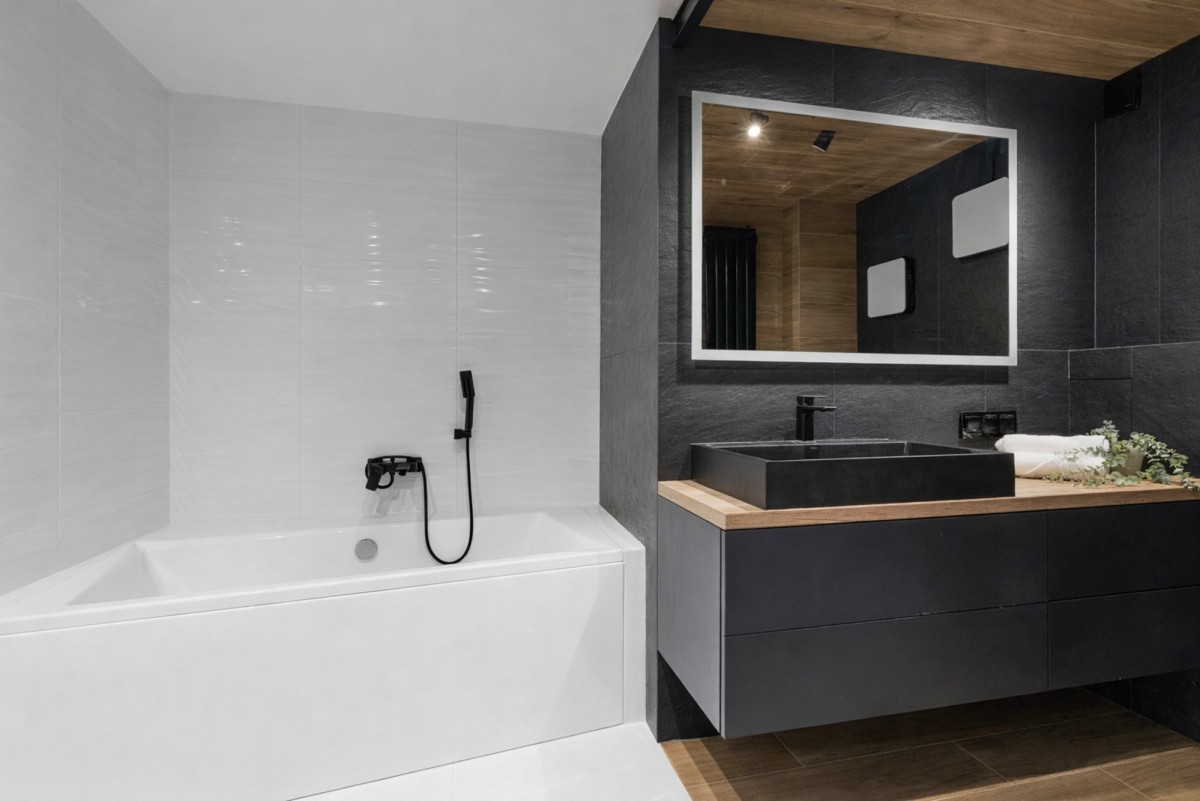 - kompleksowy remont łazienki: nowa wylewka pod podłogą, wykonana hydroizolacja, wymieniona armatura łazienkowa, nowy grzejnik łazienkowy, nowa zabudowa meblowa na zamówienie, nowe lustro z podświetleniem LED, wysokiej jakości płytki (hiszpańskie) oraz komplet nowego oświetlenia LED,
