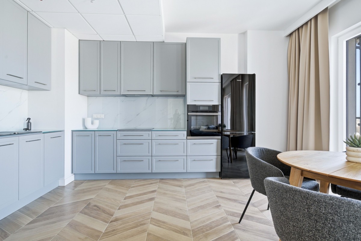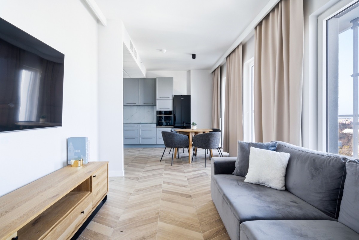 Apartament wykończony został w podwyższonym standardzie, z dbałością o funkcjonalność oraz komfort codziennego użytkowania.