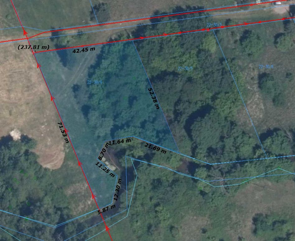Działka budowlana o powierzchni 2000 m2 w świetnej cichej lokalizacji z linią brzegową, posiada wydane warunki zabudowy na 4 segmenty. Dostęp do drogi utwardzonej, działa częściowo porośnięta krzewami i drzewami.
