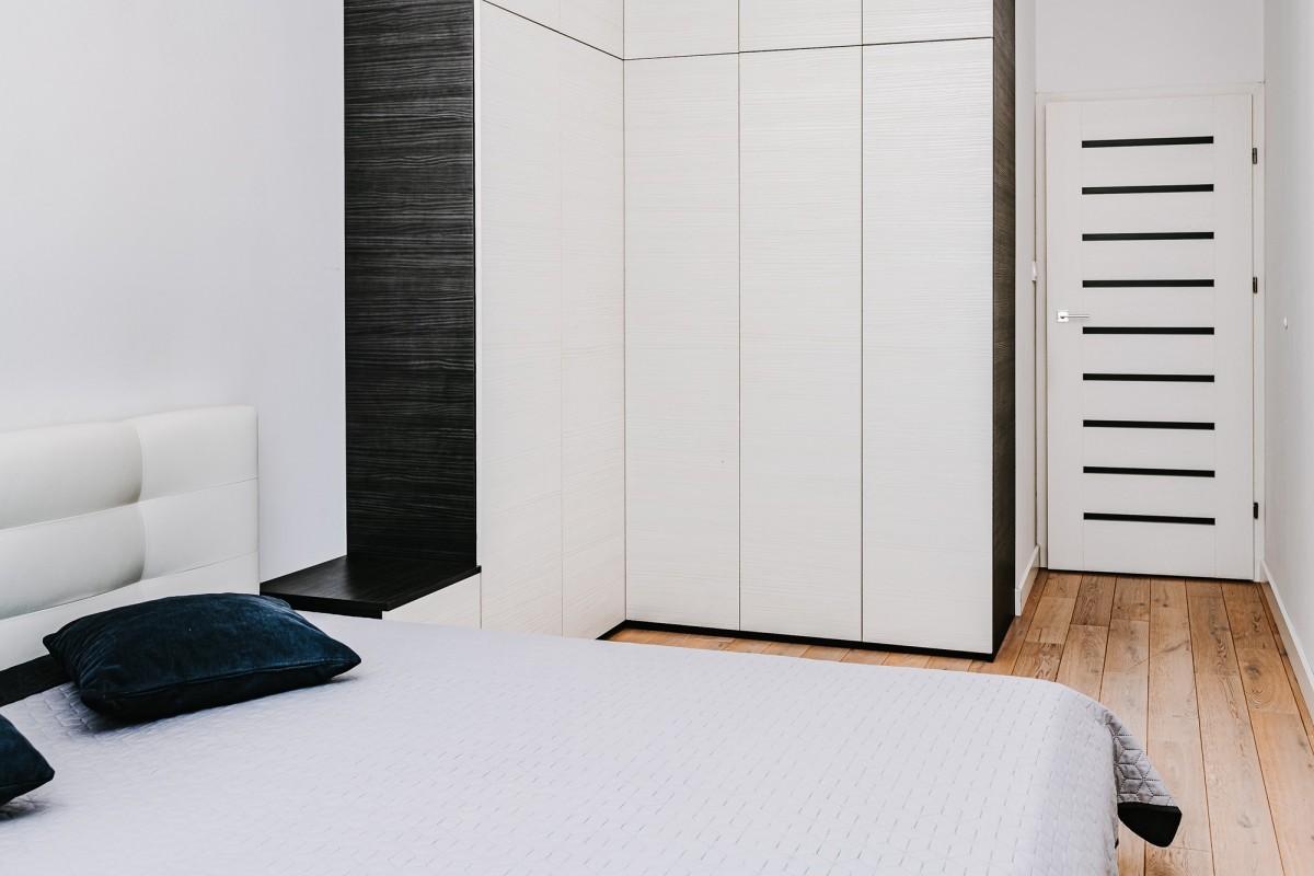 – sypialnia główna: łóżko 160×200 cm + zabudowane szafy