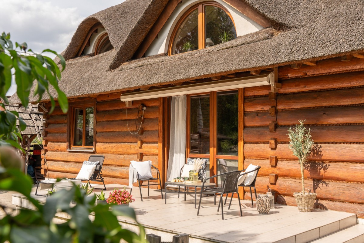 Nie w górach, nie w Holandii, nie w skansenie – a w sercu Mazowsza stoi dom jak z bajki: z jodłowego bala, kryty grubą trzcinową strzechą, która zimą trzyma ciepło, latem chłód, a deszcz na niej brzmi jak… cisza.