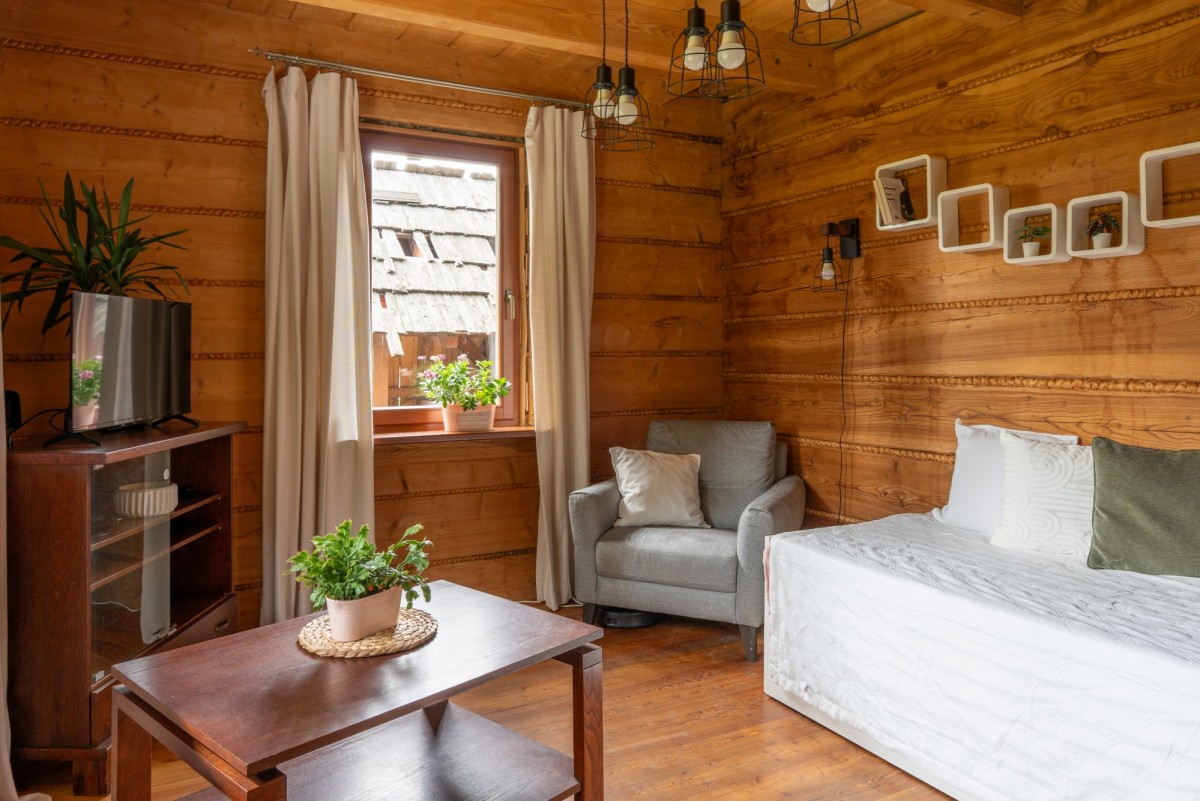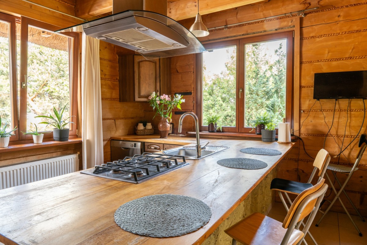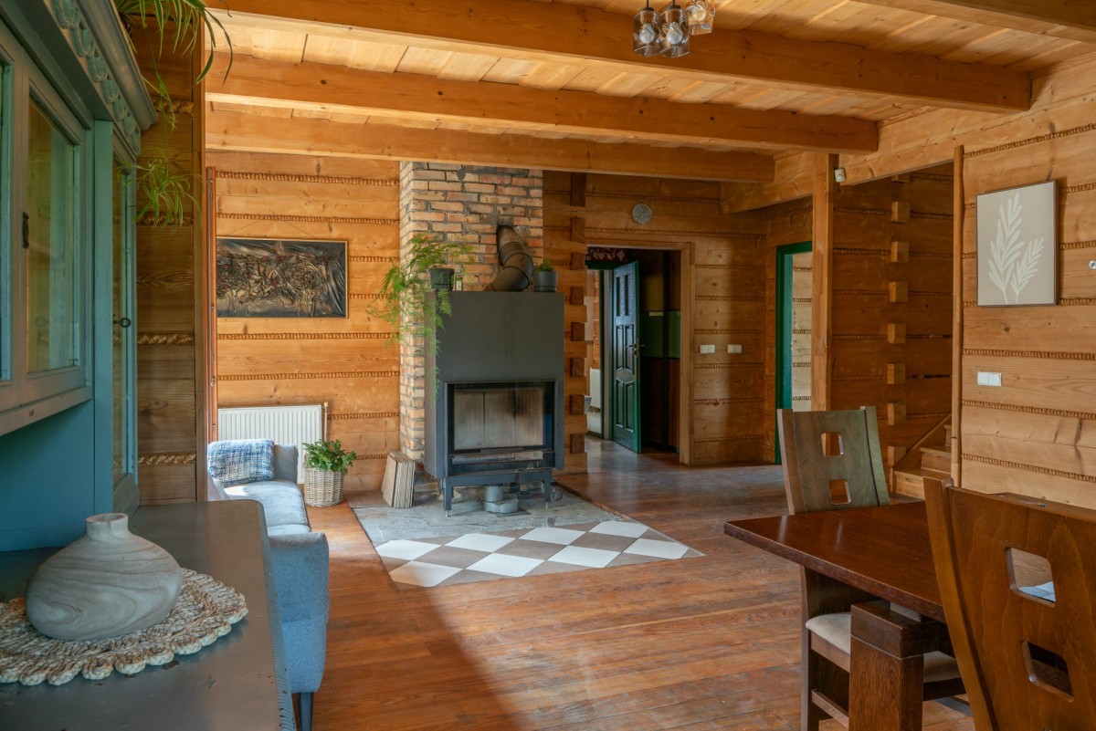 Ten bajeczny dom został zbudowany w 2010 roku przez właściciela-budowlańca z myślą o ekologii, naturalnych materiałach i zdrowym mikroklimacie. Został zbudowany z bala jodły świętokrzyskiej. W 2016 roku dach z gontu wymieniono, wzorem holenderskim, na strzechę o imponującej grubości 30 cm zapewniającą naturalną izolację. To połączenie tradycji, ekologii i niezwykłej estetyki. Pięknie warkocze mszeni, okiennice w formie lukarny (tzw. wole oko), specjalnie sprowadzana z Holandii kalenica z porcelany dodająca całości elegancji czy zewnętrzne parapety z naturalnego wrzosu – wszystko to tworzy detale świadczące o staranności, z jaką zadbano tutaj zarówno o formę, jak i materiały. Dom oferuje 179,5 m2 powierzchni całkowitej (144 m2 użytkowej) na przestronnej 1080 m2 działce. Obecnie dom wymaga drobnego remontu.