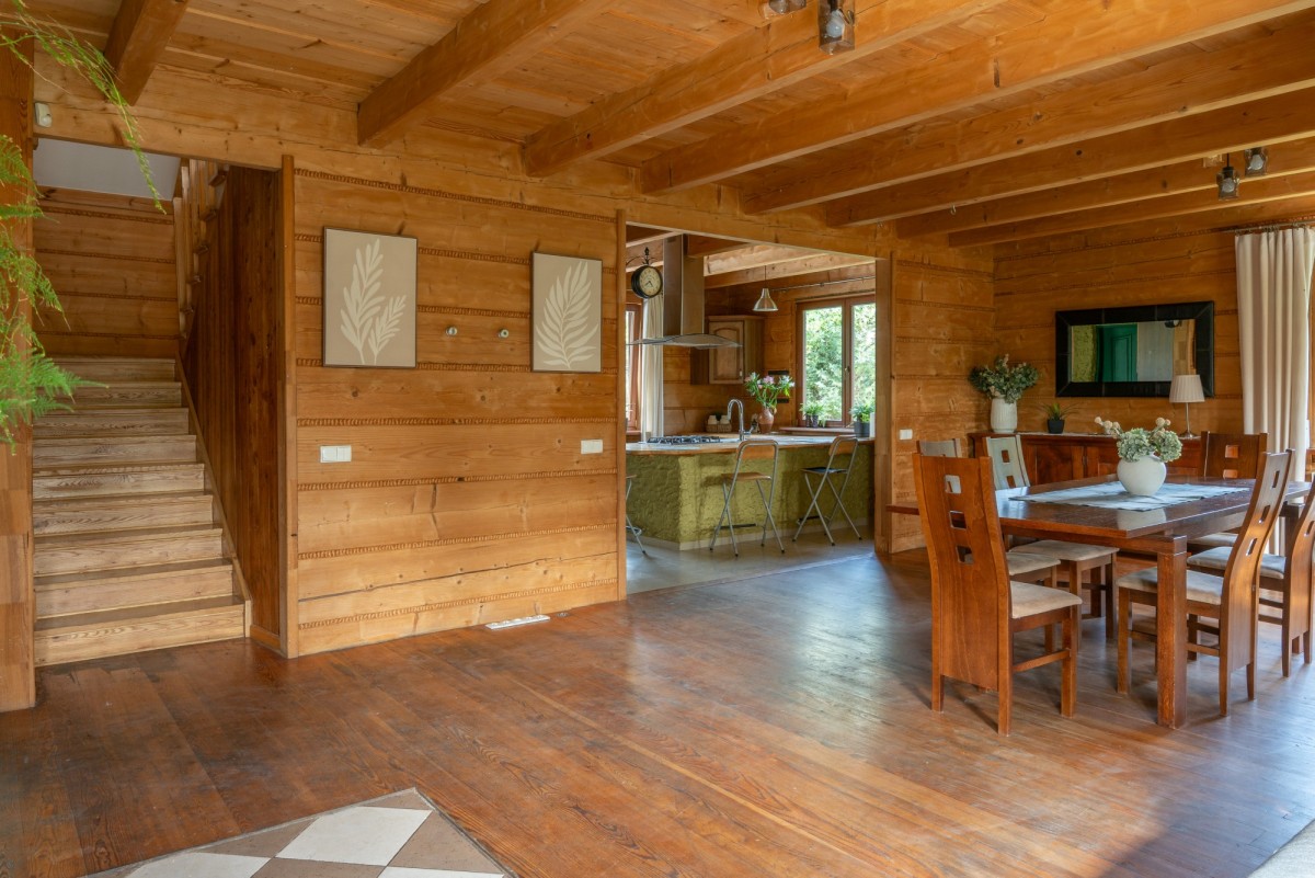 Dom, który wygląda jakby przeniósł się z Podhala lub malowniczej wioski w Holandii – i rzeczywiście, właśnie te miejsca były inspiracją do jego powstania. Taki dom to unikat na Mazowszu, skryty w zaciszu otulonej łąkami i lasem wsi Przypki pod Tarczynem (powiat piaseczyński). Bajeczna bryła zachwyca naturalnością, zdrowym mikroklimatem, ekologiczną technologią i niebanalną estetyką. 180 m2 przestrzeni łączy w sobie cztery przestronne pokoje, duży salon z kominkiem, jasną kuchnię, dwie łazienki, przestronny hol na piętrze stanowiący dodatkowe pomieszczenie, oraz kotłownie. Taki rozkład zapewnia wygodę codziennego życia w niepowtarzalnym stylu. Jeżeli cenisz sobie naturalność, ekologię i marzysz o domu z duszą dla siebie i swoich bliskich – to ta oferta bije inne na głowę!