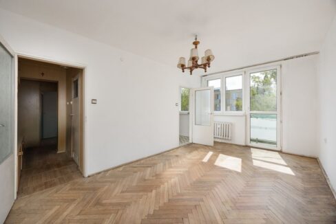 Mieszkanie do remontu z dużym potencjałem aranżacyjnym. Pokój dzienny z wnęką graniczący ścianą z łazienką, możliwość zainstalowania kuchni otwartej na pokój a z aktualnej kuchni możliwość uzyskania dodatkowej sypialni.