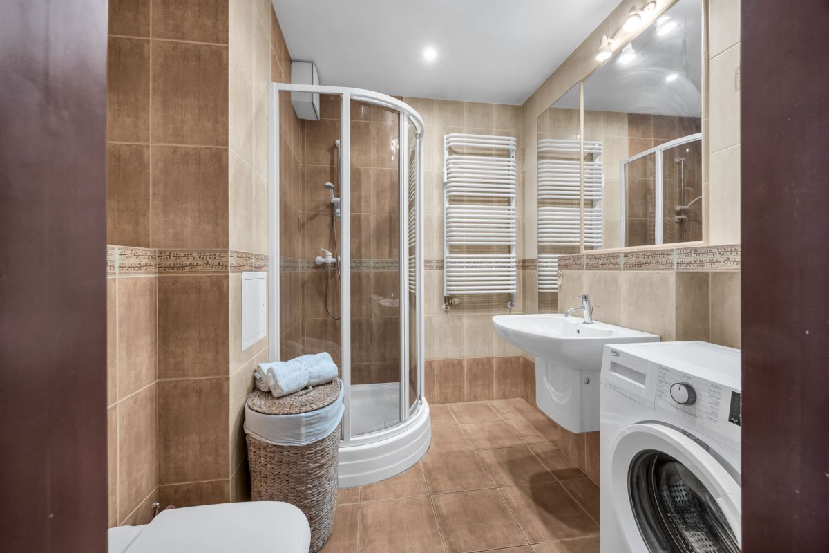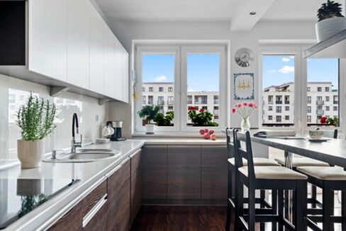 Układ mieszkania jest bardzo funkcjonalny – dodatkowa, przestronna garderoba oraz druga łazienka dają komfort codziennego użytkowania. Ekspozycja północno-wschodnia sprawia, że mieszkanie jest jasne, a jednocześnie nie nagrzewa się nadmiernie latem. Mieszkanie można przekształcić w dwa niezależne lokale, co czyni je świetną propozycją zarówno dla rodzin, jak i inwestorów poszukujących nieruchomości pod wynajem.