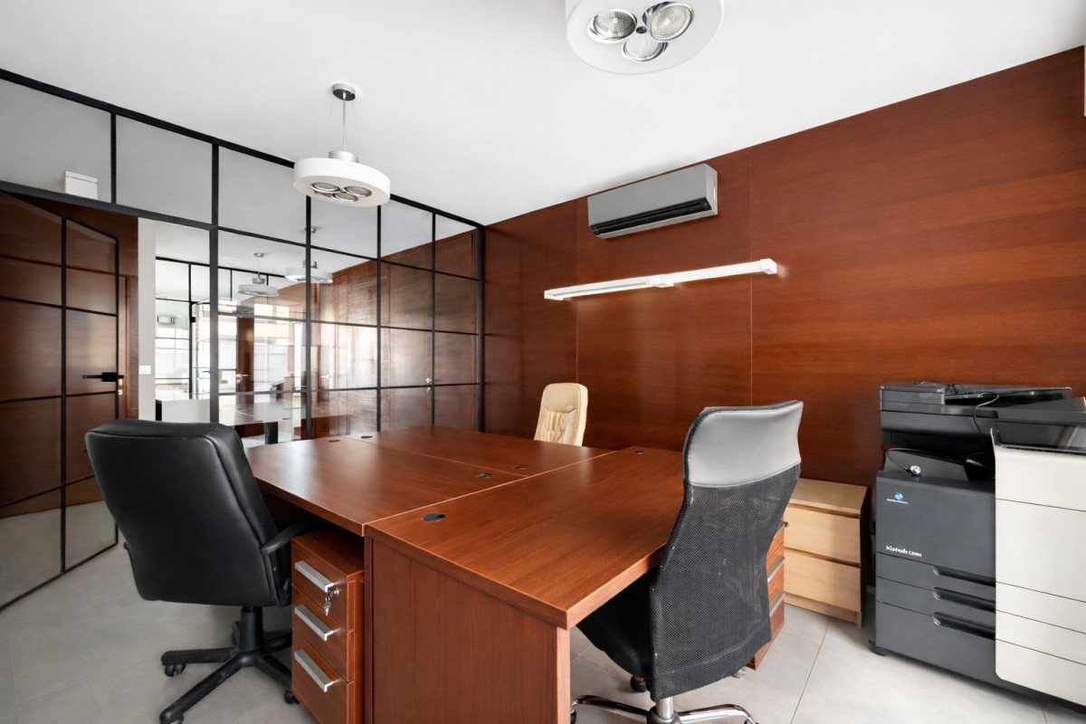The current layout is very practical – it includes a spacious corridor with a waiting area for clients, a separate conference room, and three independent offices. This makes the property ideal for a law firm, consulting office, company headquarters, private practice, or design studio.