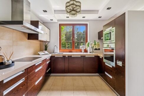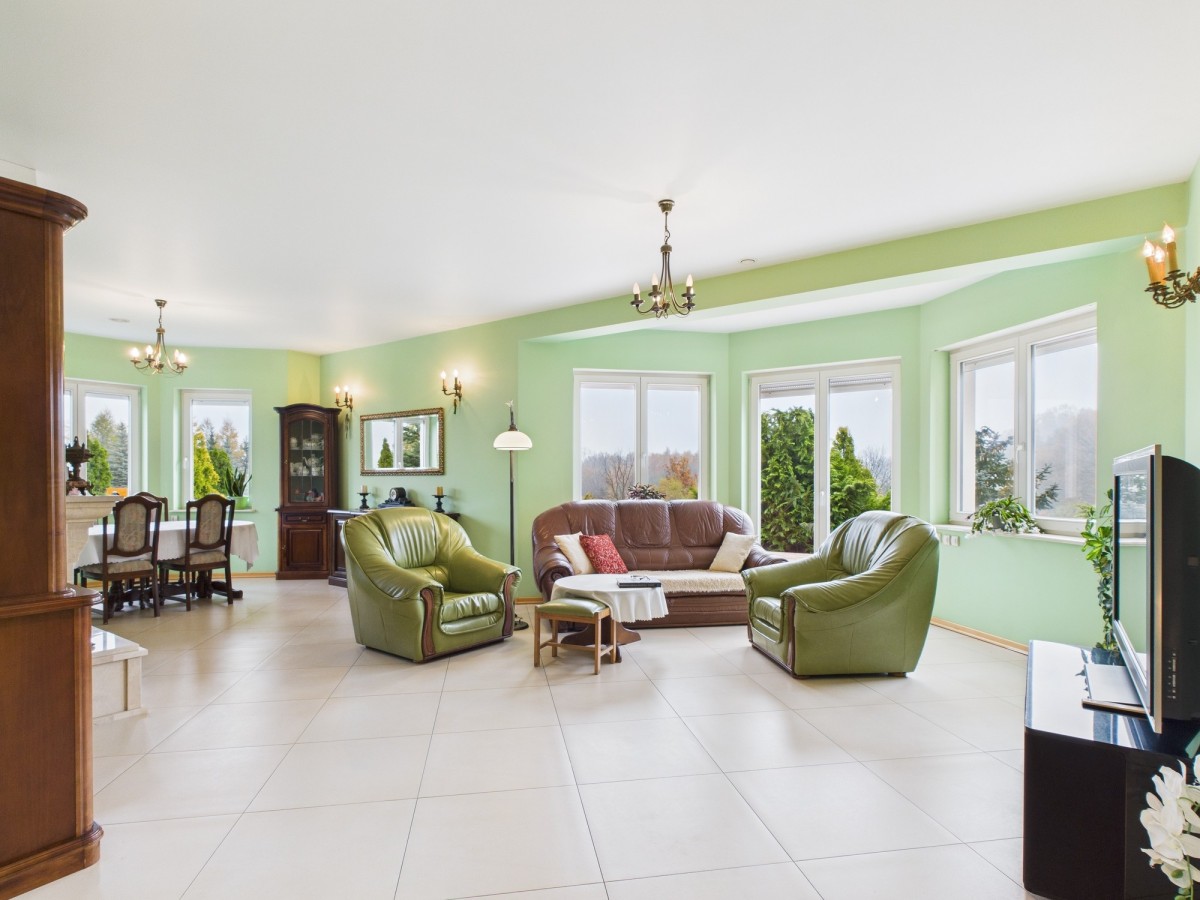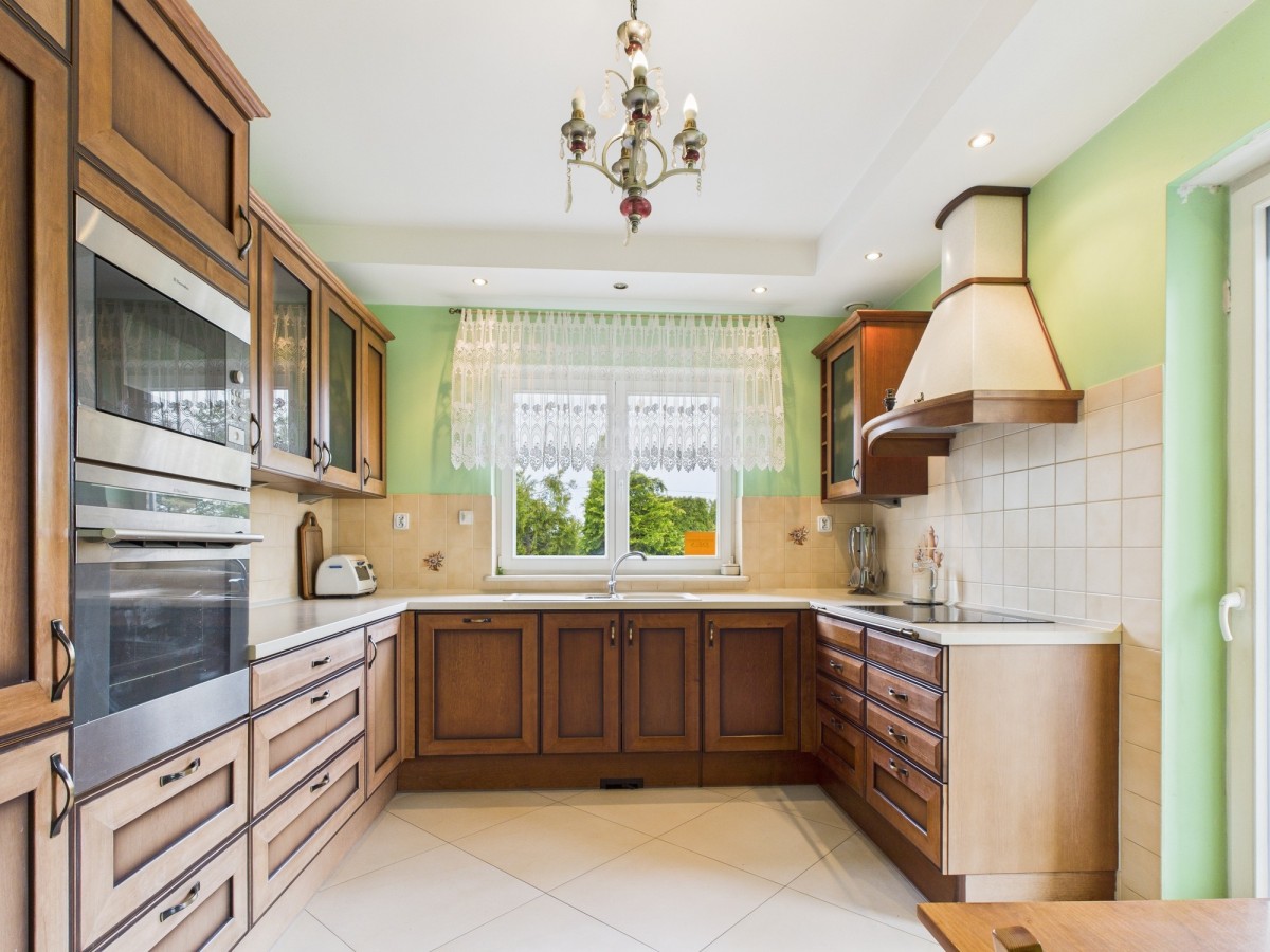 Udogodnienia Premium: Dach z ceramicznej dachówki, stolarka (okna, drzwi, wewnętrzne schody) wykonane z litego, naturalnego drewna w perfekcyjnym stanie technicznym. Wnętrze wyposażone w odkurzacz centralny oraz stylowy kominek z funkcją rozprowadzania ciepła, który gwarantuje przytulną atmosferę, oraz alternatywne źródło ogrzewania. Przemyślane garderoby, pomieszczenia techniczne i ogromna pralnia pomagają utrzymać idealny porządek. Duży, ogrzewany garaż wykończony płytkami, ze stanowiskami na dwa samochody w bryle budynku- może pełnić funkcję dodatkowego pomieszczenia technicznego. Automatyczny system nawadniania roślinności ogrodowej i wiele innych udogodnień.