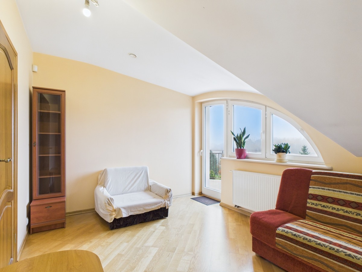 Półpiętro: Duży pokój i garderoba – idealna przestrzeń na domową bibliotekę, siłownię lub salę gier.