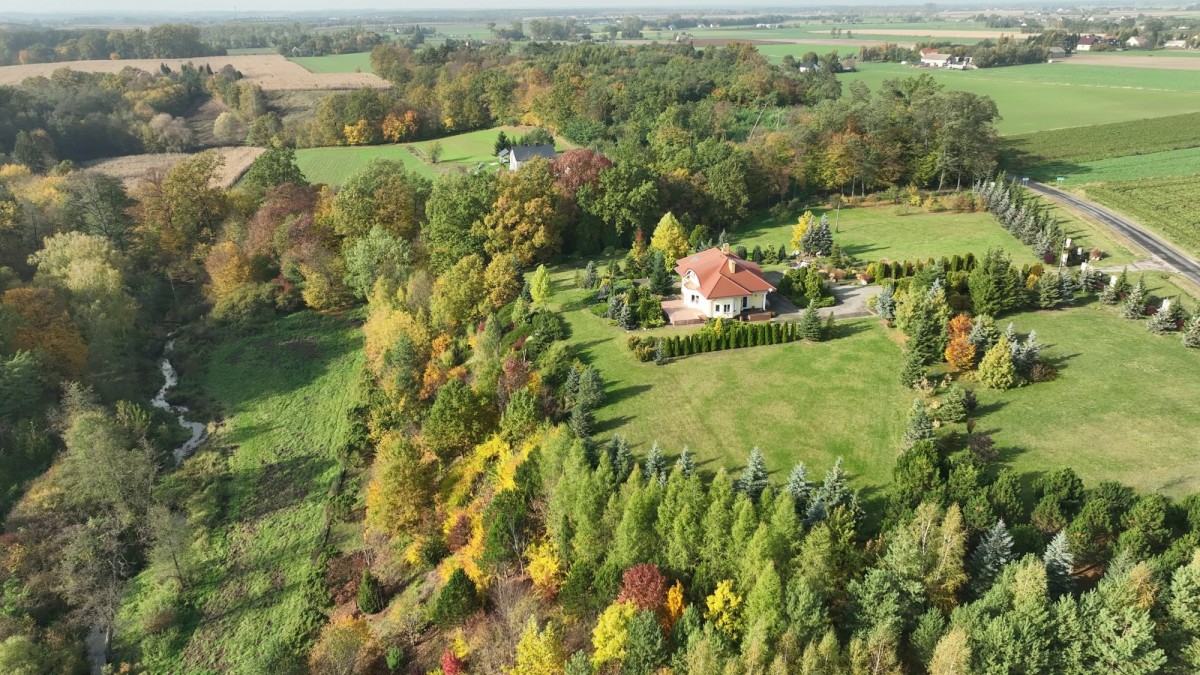 Bliskość Natury: Dom położony jest w sąsiedztwie lasu, nad malowniczą skarpą, u podnóża której płynie rzeka Wierzbica, z której około 160 metrów linii brzegowej stanowi integralną część działki. Jest to ostoja dzikiej przyrody przyciągająca wiele zwierząt, które można obserwować o każdej porze dnia i roku.