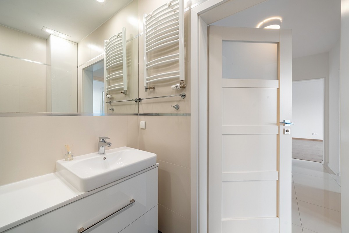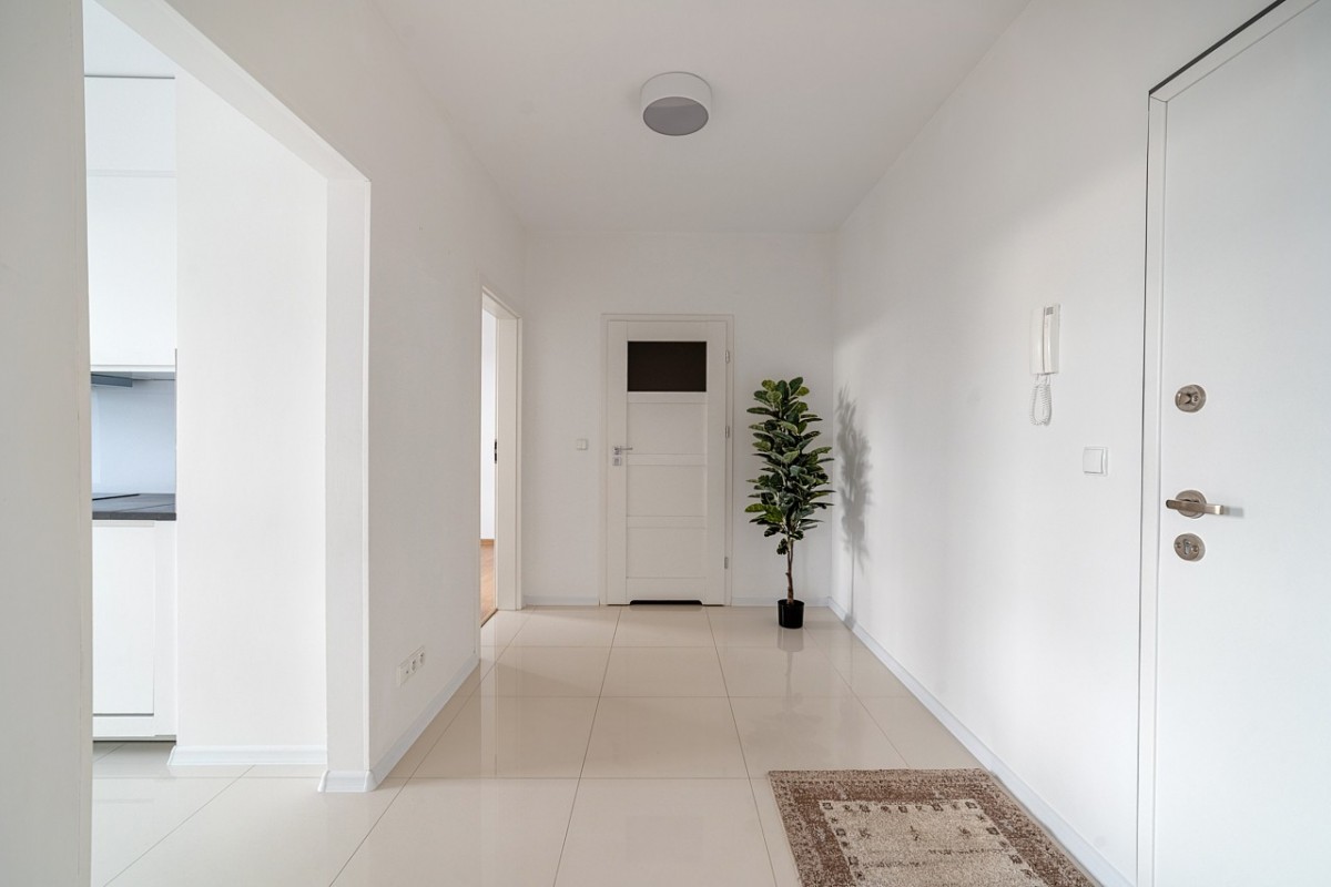 - komfort przestrzeni – brak jakichkolwiek budynków na przeciwko okien powoduje, że będąc w mieszkaniu ma się poczucie ekskluzywności i prywatności