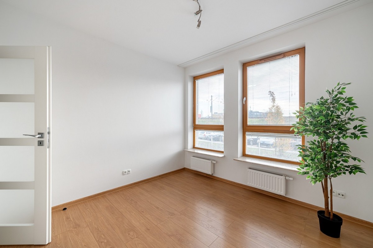 Na sprzedaż funkcjonalne i komfortowe 2-pokojowe mieszkanie o powierzchni 55 m², położone na parterze nowoczesnego budynku z 2014 roku z ogródkiem o pow. 23m2, miejscem postojowym w garażu oraz komórką lokatorską | Włochy, ul. Obywatelska.