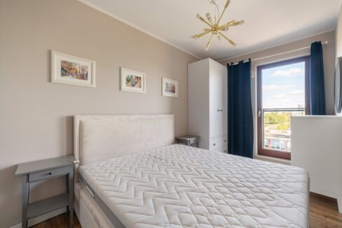 Mieszkanie składa się z przestronnego salonu z aneksem kuchennym i wyjściem na balkon, sypialni, łazienki i przedpokoju z garderobą.