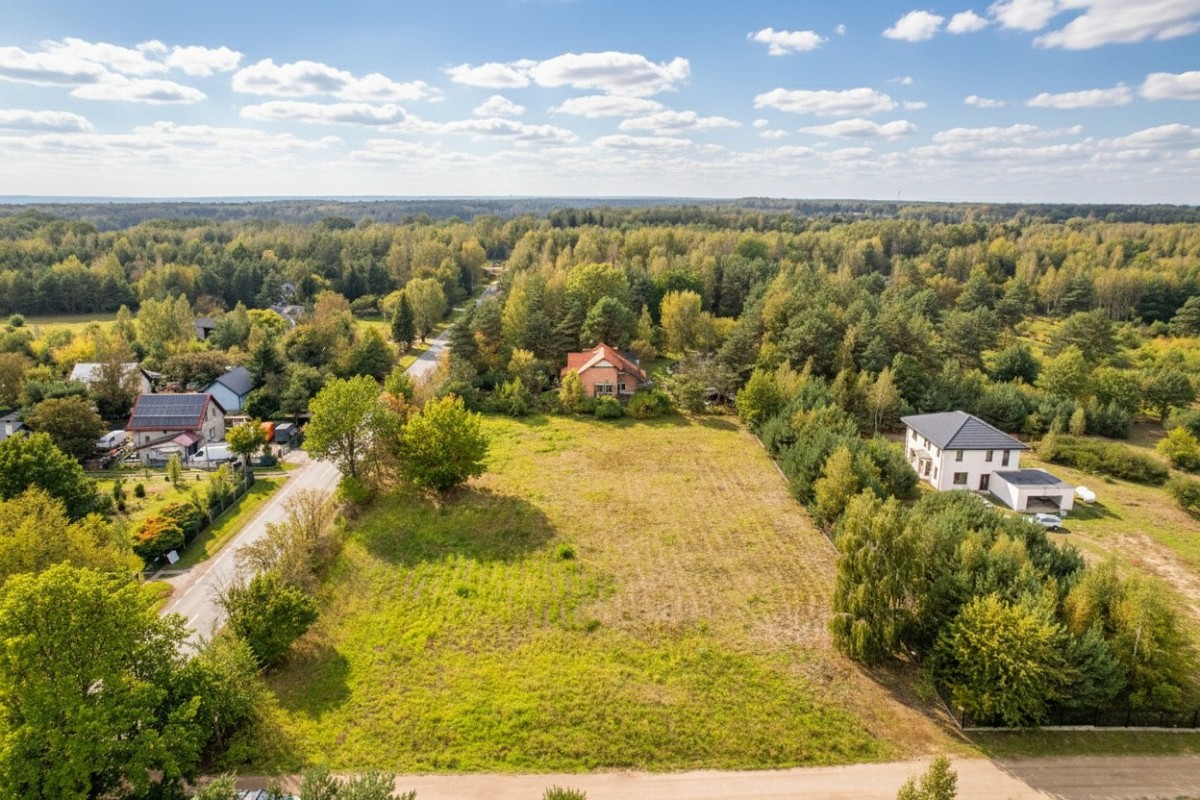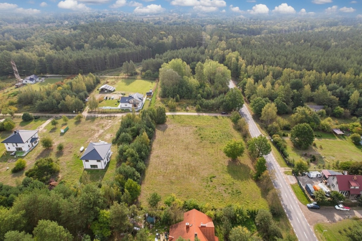 Okolica działki jest bardzo atrakcyjna — graniczy z Chojnowskim Parkiem Krajobrazowym, co zapewnia walory przyrodnicze i rekreacyjne. W najbliższym otoczeniu znajdują się inne domy jednorodzinne, sklep, szkoła oraz przystanek autobusowy, co sprawia, że lokalizacja jest wygodna dla codziennego życia.