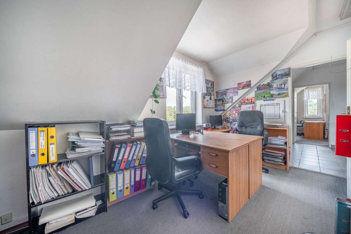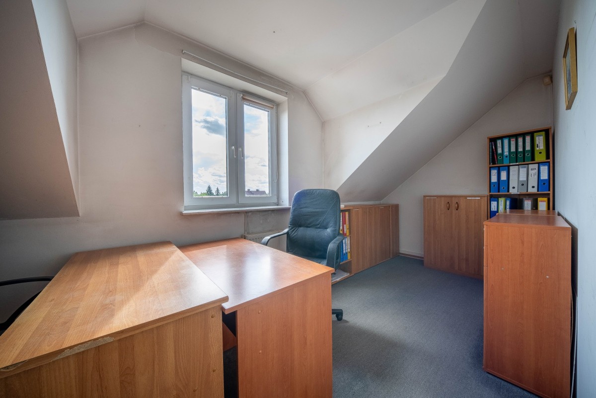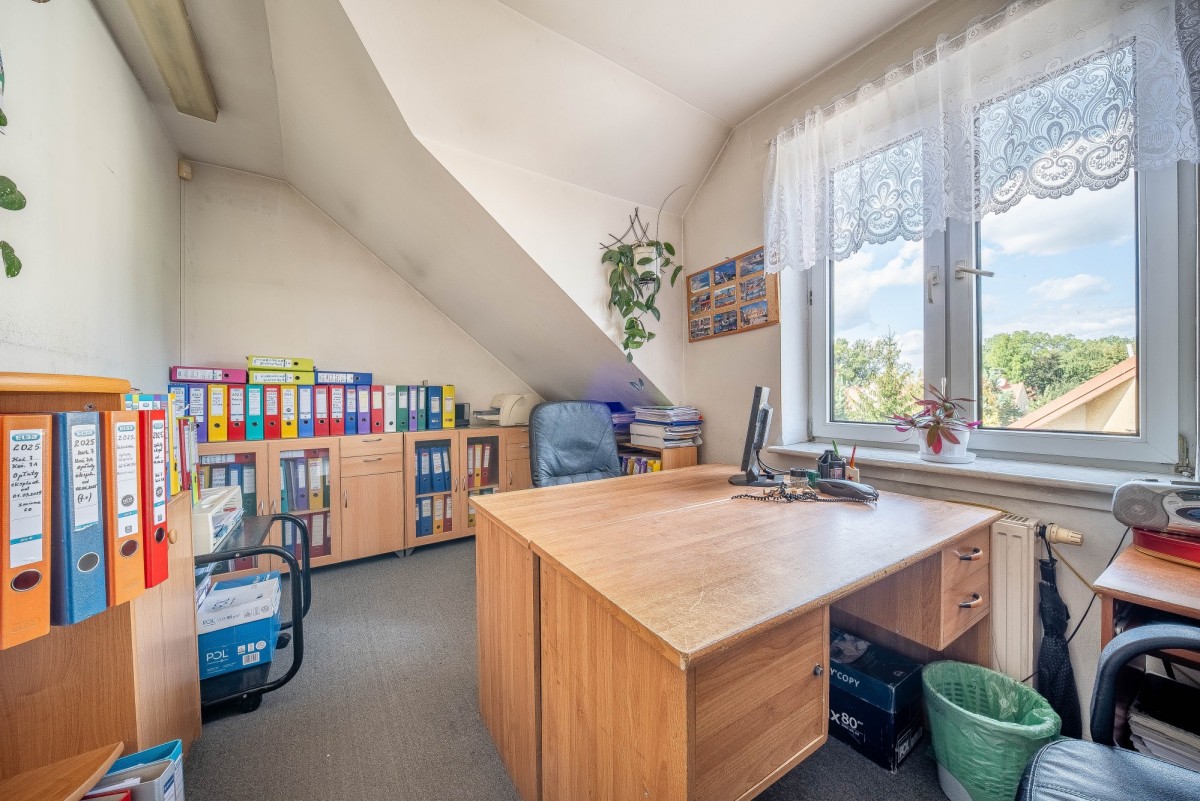 Na parterze: wydzielone pomieszczenie, z osobnym wejściem i toaletą (obecnie wynajmowane na salon kosmetyczny), o powierzchni 15,9 m2, komórka z osobnym wejściem i przedsionek (3,67 m2, 1, 62 m2), stacja trafo (6,72m2).