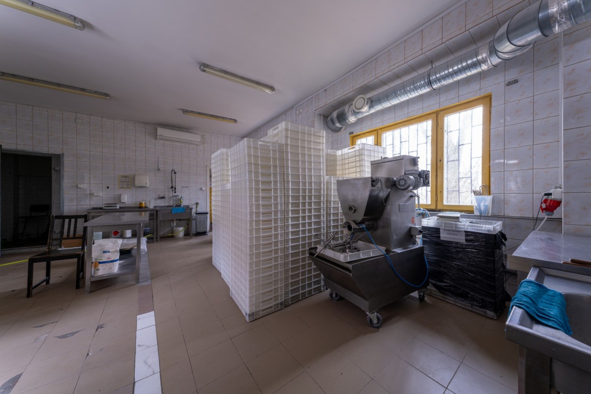 Powierzchnia produkcyjna: około 320 m². dostosowana do branży spożywczej z pomieszczeniami sanitarnymi, magazynowymi i chłodnią.