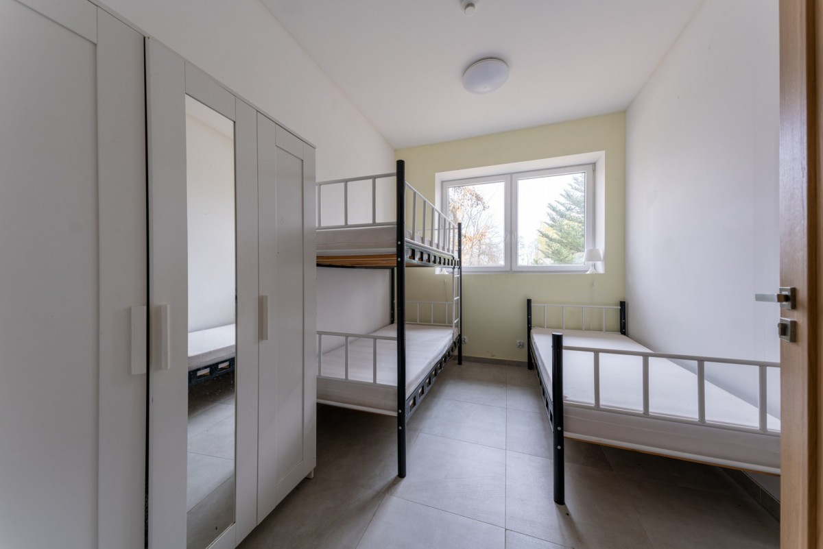 Hotel ma 2 kondygnacje, 11 pokoi, dużą kuchnię z jadalnią w pełni wyposażoną, łazienki z prysznicami, toaletami na dwóch poziomach i osobną recepcję.