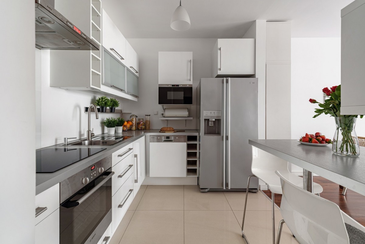 – pełne wyposażenie w sprzęt AGD: lodówka, płyta elektryczna, piekarnik, zmywarka, pralka,