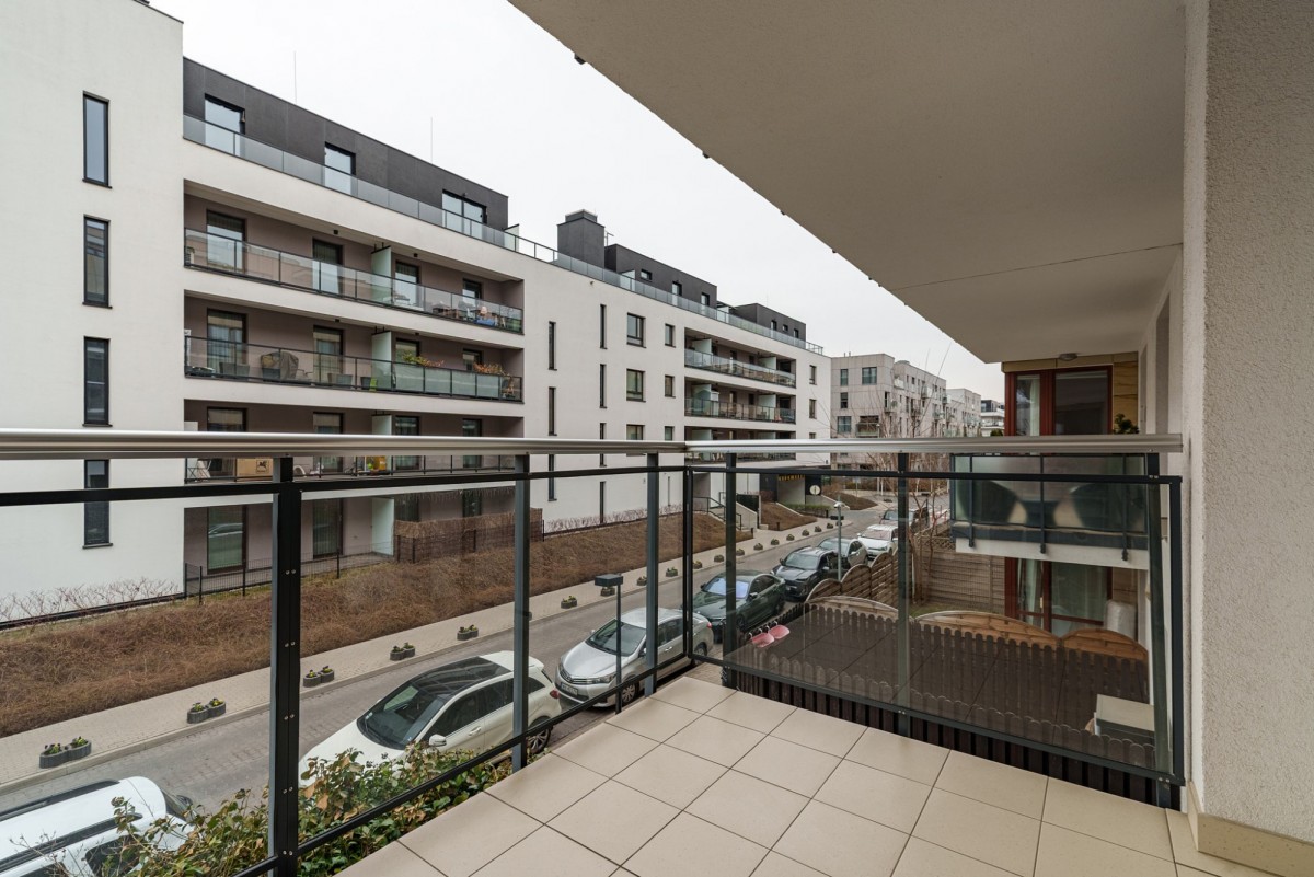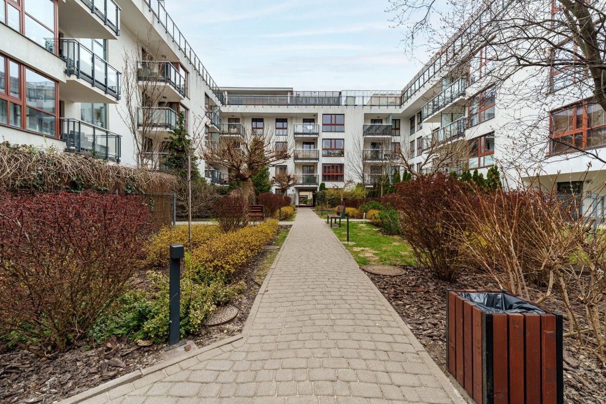 Mieszkanie jest bardzo dobrze skomunikowane. W bezpośrednim sąsiedztwie znajdują się przystanki autobusowe i tramwajowe, zapewniające wygodny dojazd do różnych części miasta. Dojazd do centrum zajmuje około 30 minut komunikacją miejską oraz około 20 minut samochodem. Najbliższy przystanek tramwajowy „Miasteczko Wilanów”.