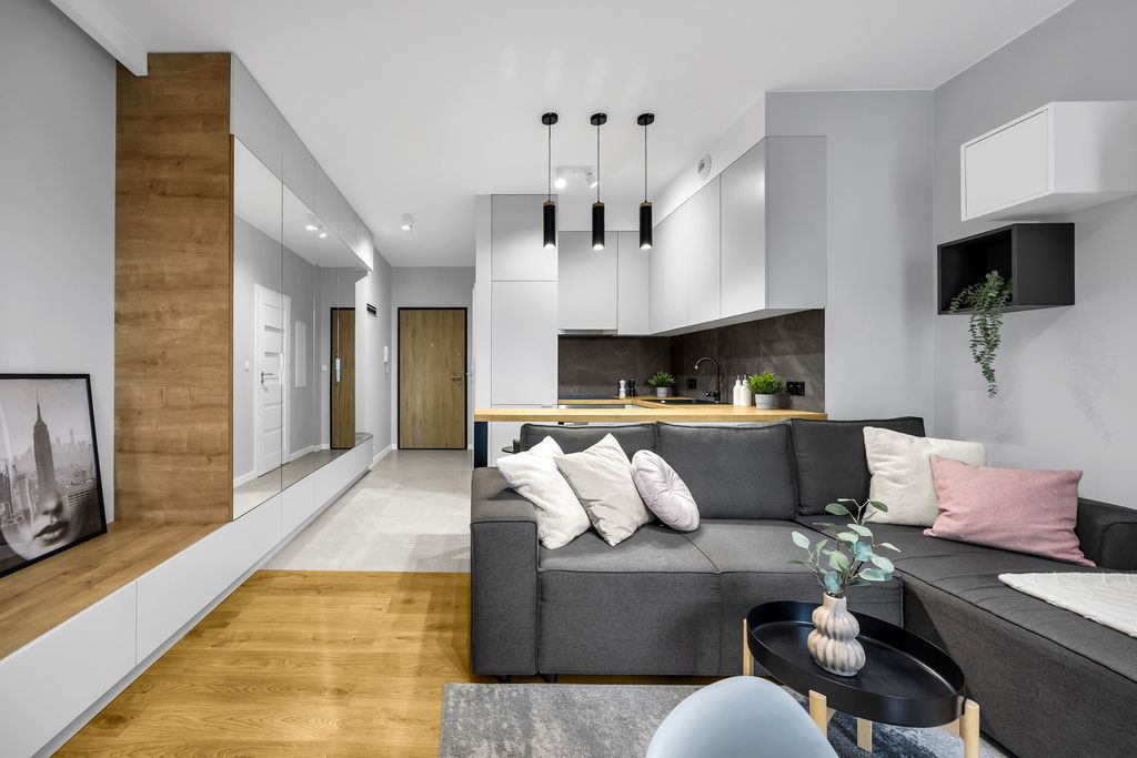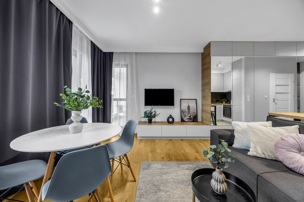 To mieszkanie nie próbuje być wszystkim dla wszystkich. Ono po prostu bardzo dobrze wie, dla kogo jest. Dla tych, którzy cenią świetną lokalizację, wysoką jakość wykończenia i funkcjonalność, która realnie ułatwia codzienne życie. Bez hałasu, bez chaosu – za to z klasą i pomysłem.