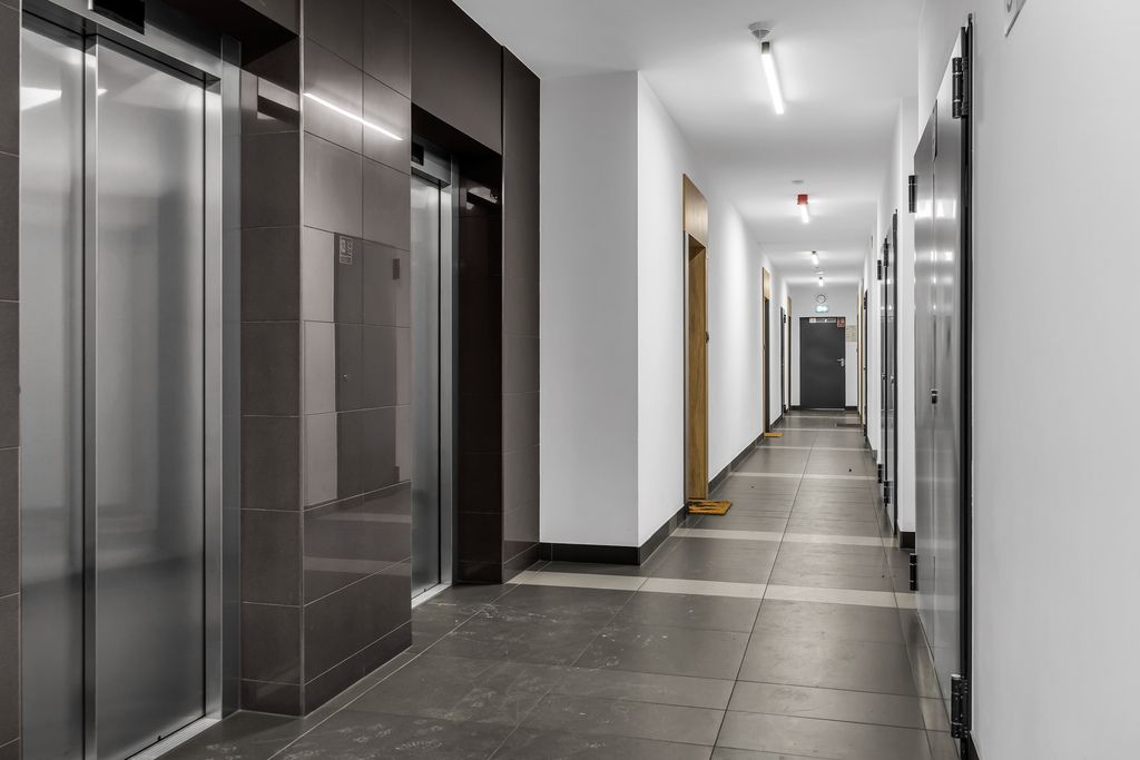 This modern building, completed in 2019, offers a high standard of common areas, a representative entrance, 24/7 security, and monitoring. Commercial and service units on the ground floor create a convenient, resident-friendly base. Elegant without excess, modern without feeling cold.