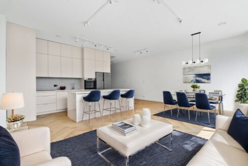40,79 m2 – salon z aneksem kuchennym (Pełne wyposażenie AGD: płyta indukcyjna, piekarnik, zmywarka, lodówko zamrażarka.)