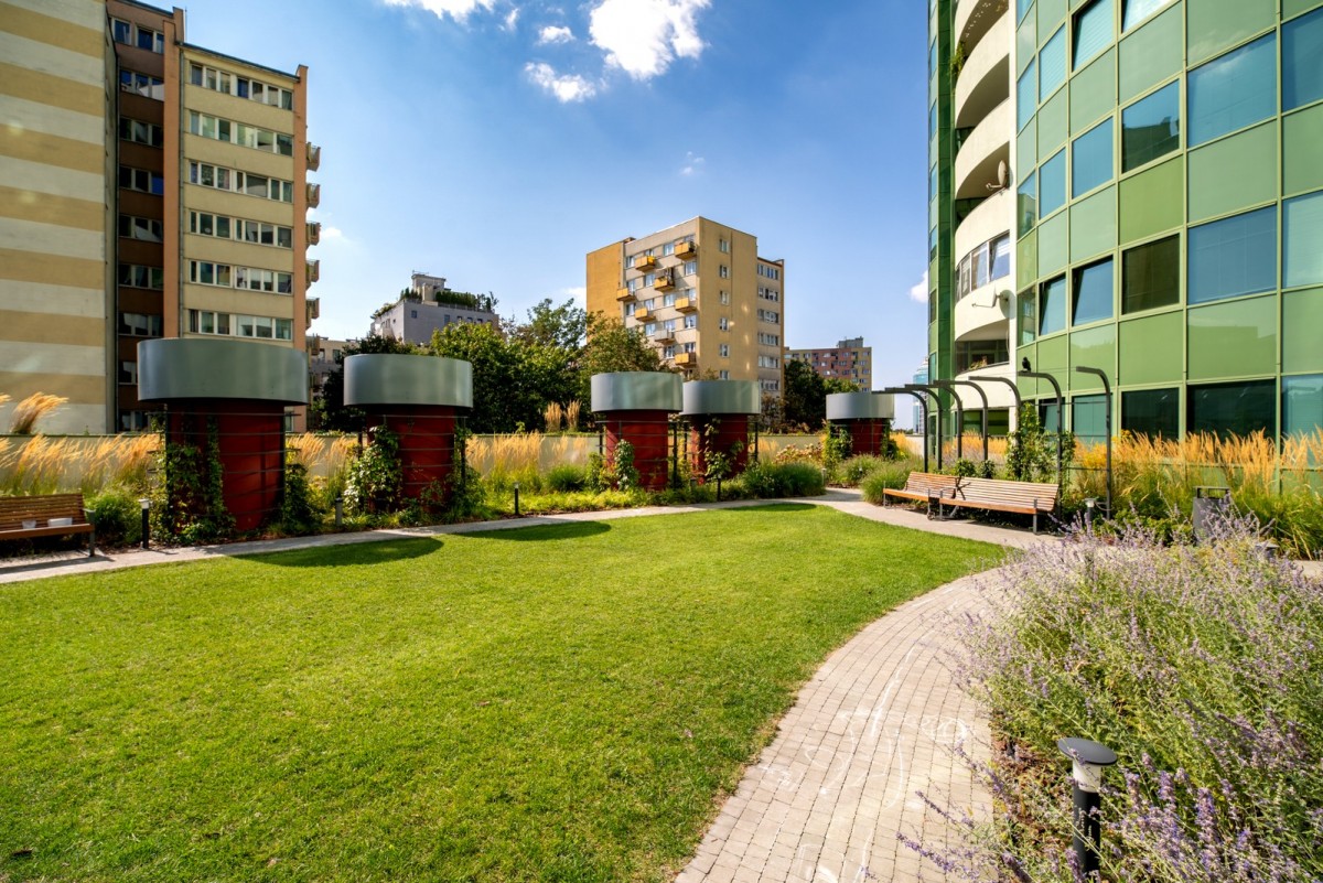 Budynek z 2003 roku, w bardzo dobrym stanie. Budynek jest monitorowany i chroniony. Na parterze budynku znajduje się sklep Biedronka, na 2. piętrze zielony ogród dostępny tylko dla mieszkańców budynku.