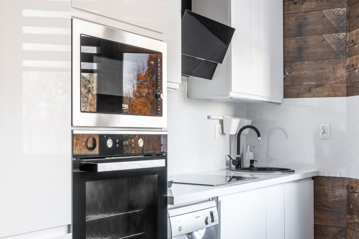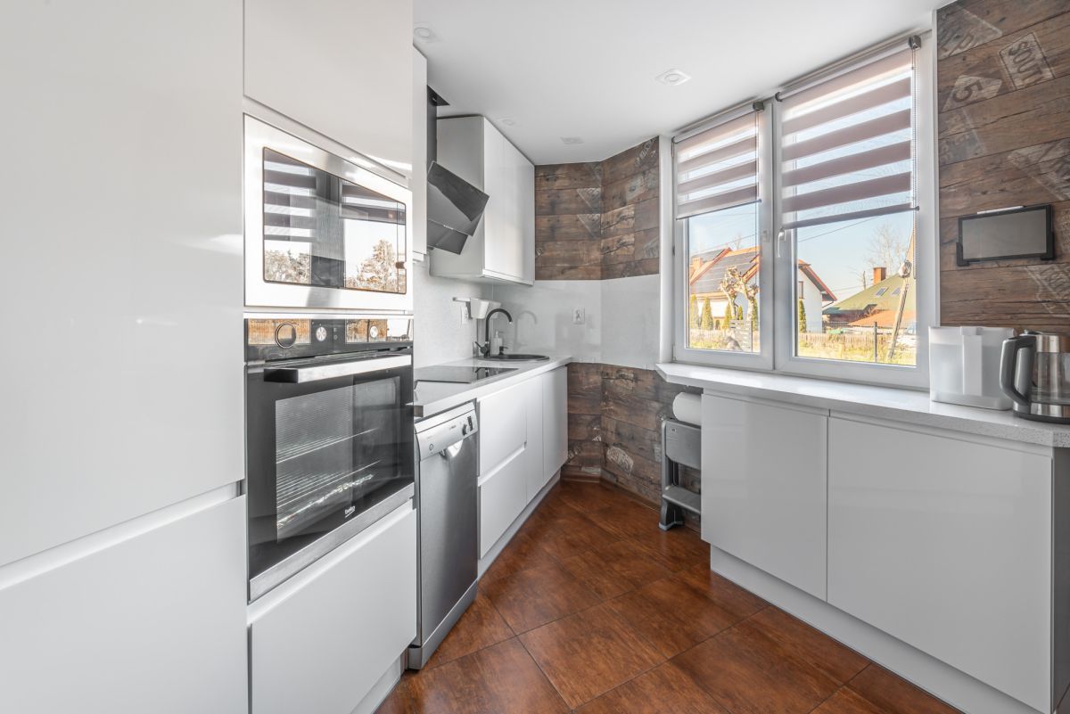 • Kuchnia w zabudowie na wymiar, wyposażona w niezbędne sprzęty AGD (wykonana w 2021 roku)