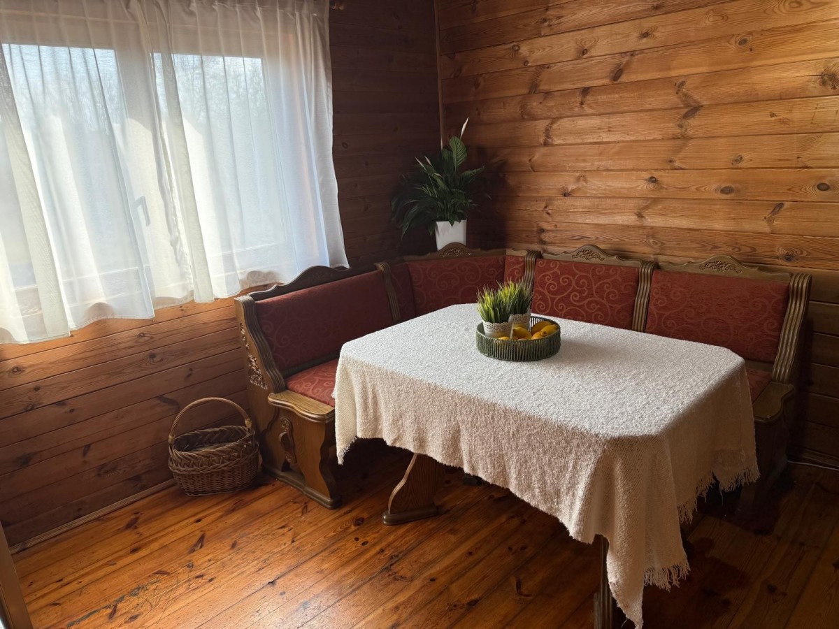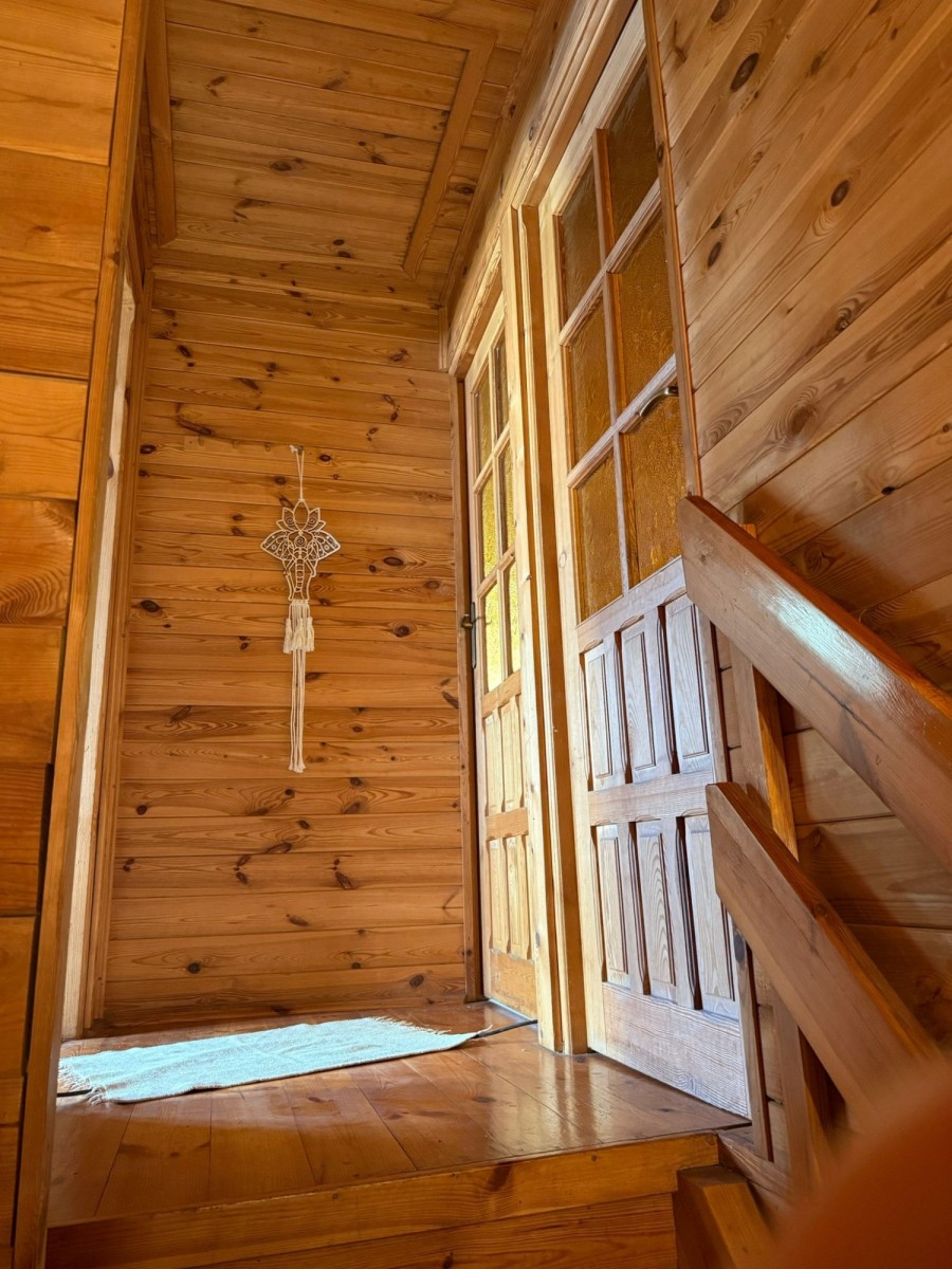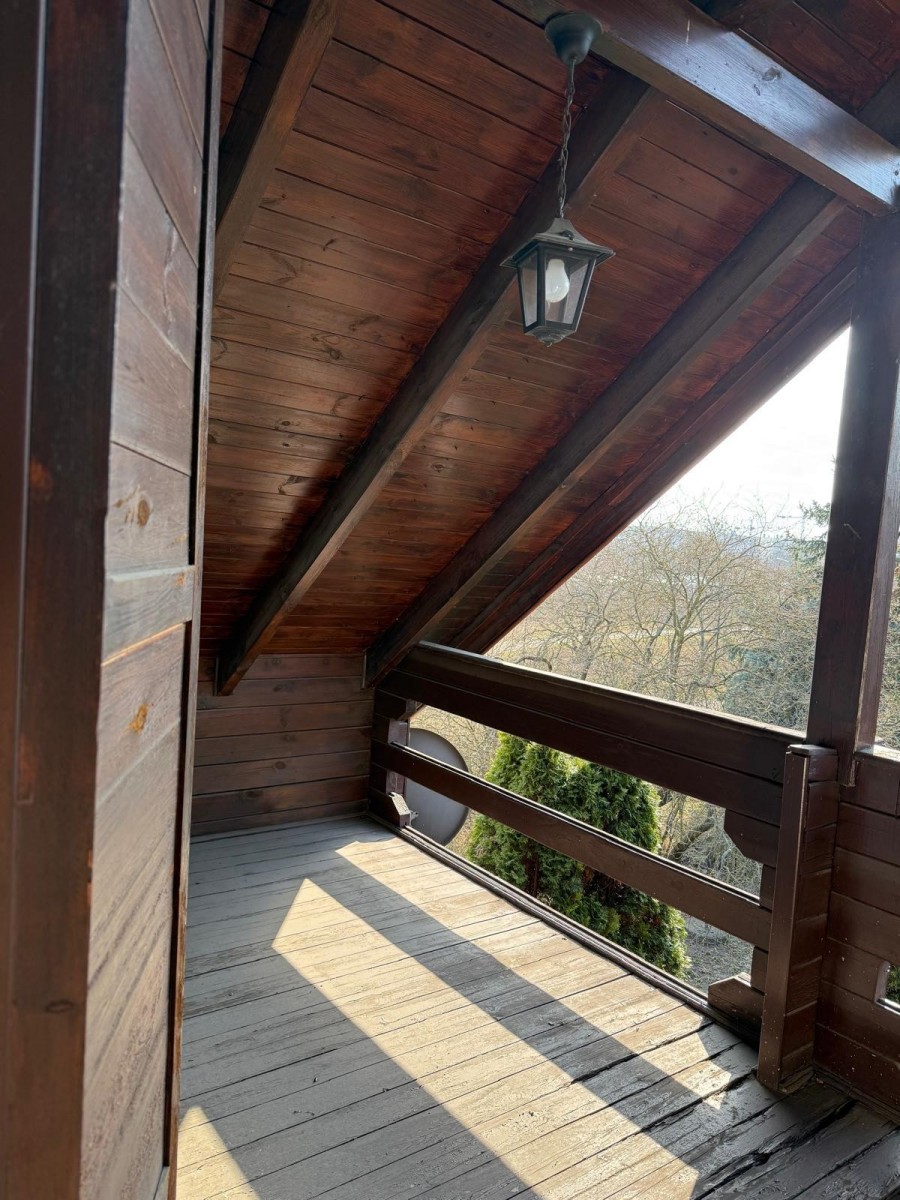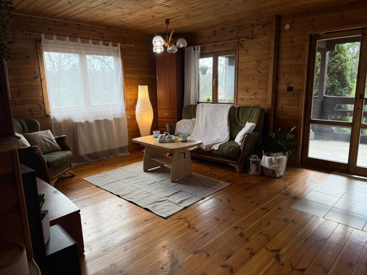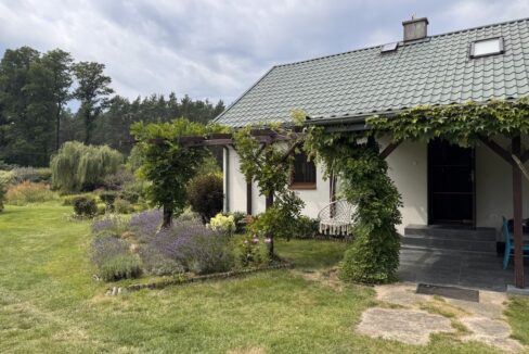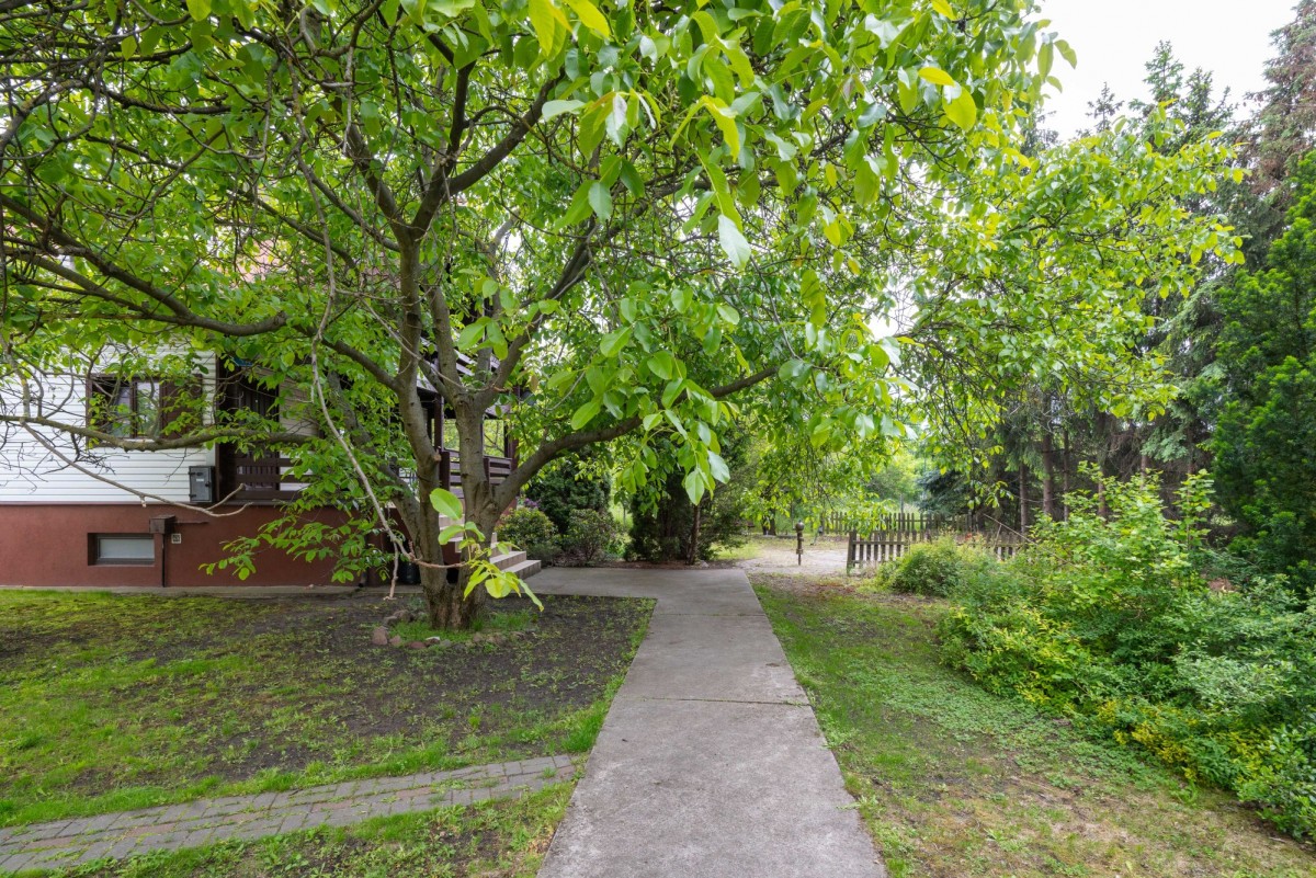 Na dużej, zagospodarowanej działce o powierzchni 1017 m2 (ok.30 m2/30 m2), znajduje się dwukondygnacyjny, całoroczny dom jednorodzinny o powierzchni ok 150 m2 . Wybudowany w 1998r w technologii drewnianej (bal kanadyjski), podpiwniczony, ocieplony i obłożony sidingiem .
