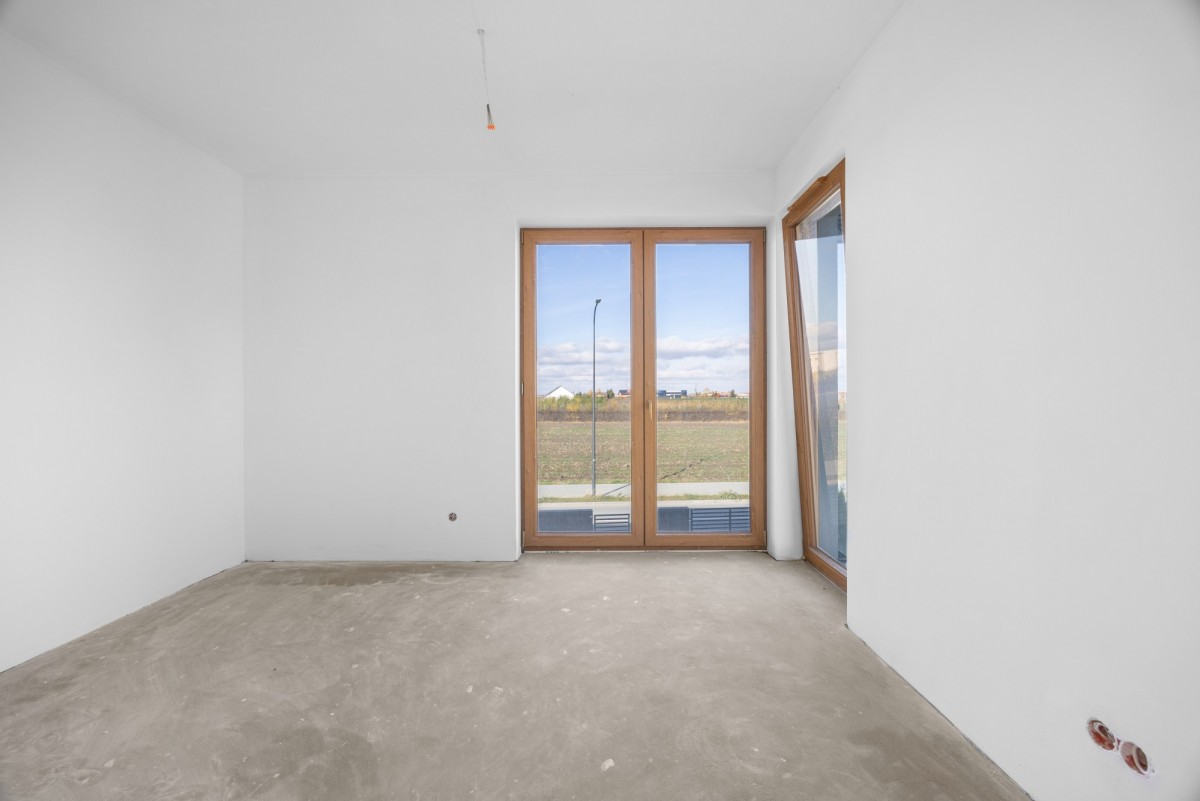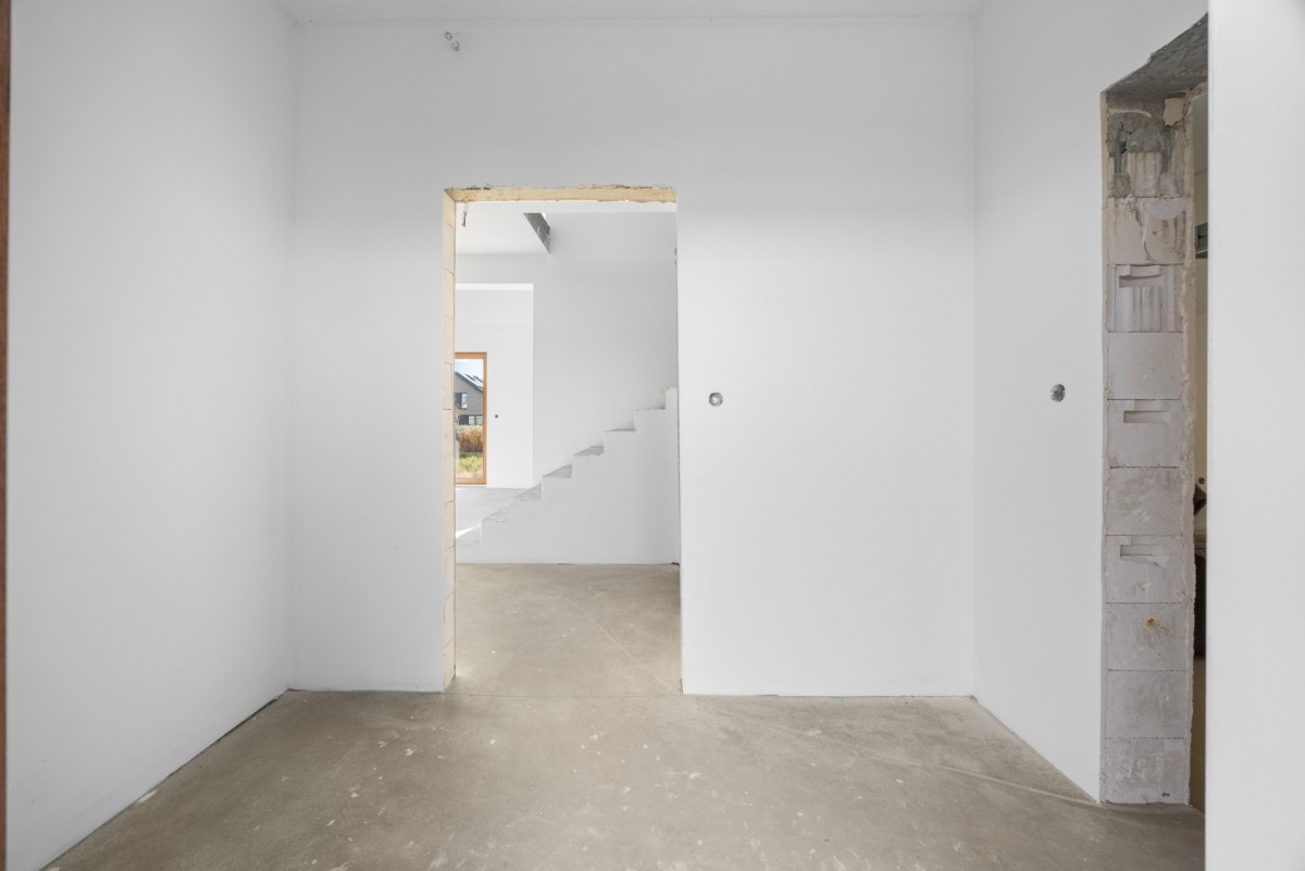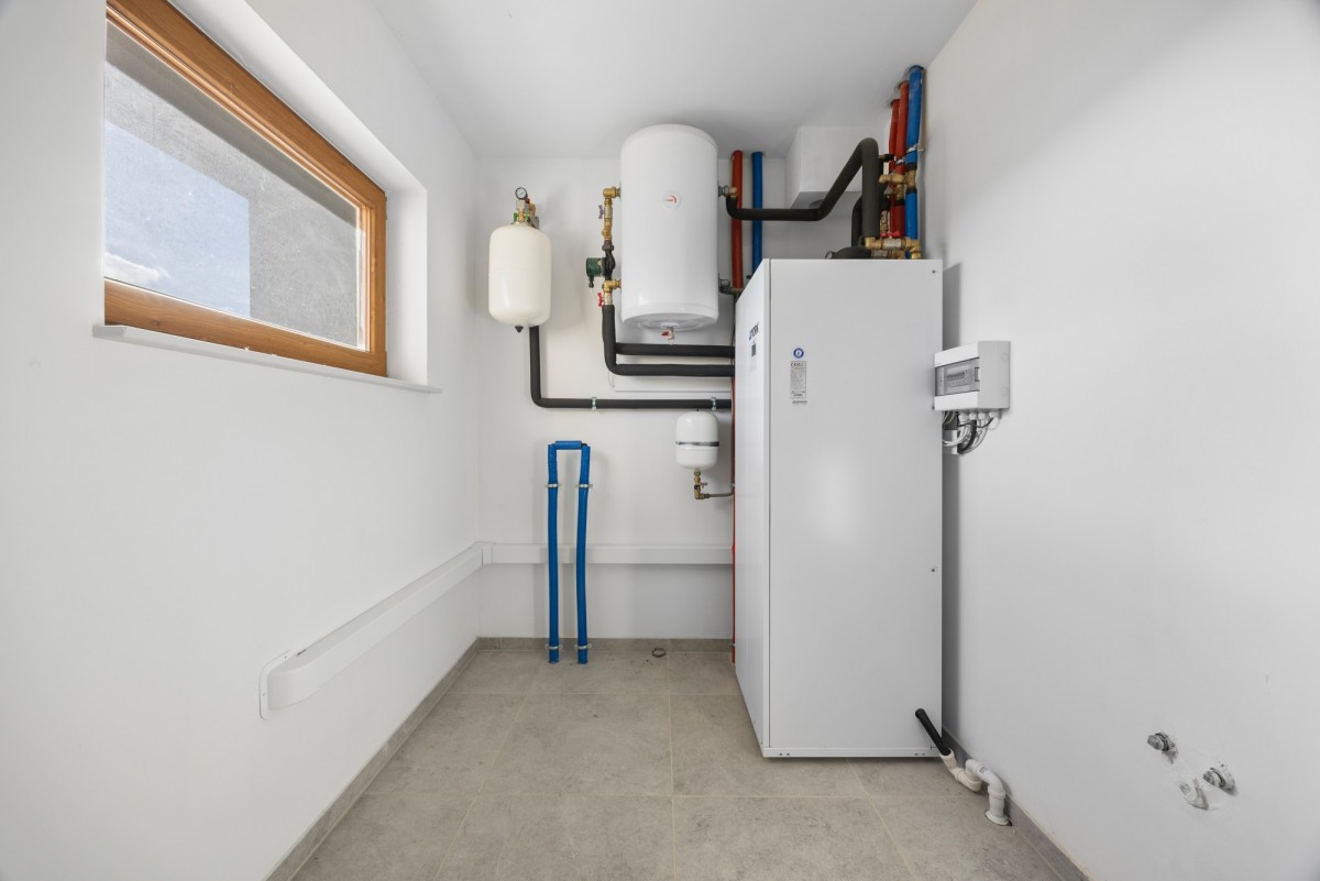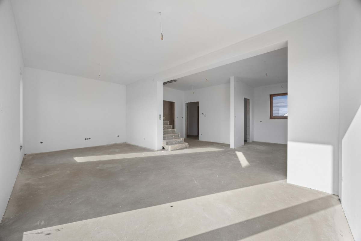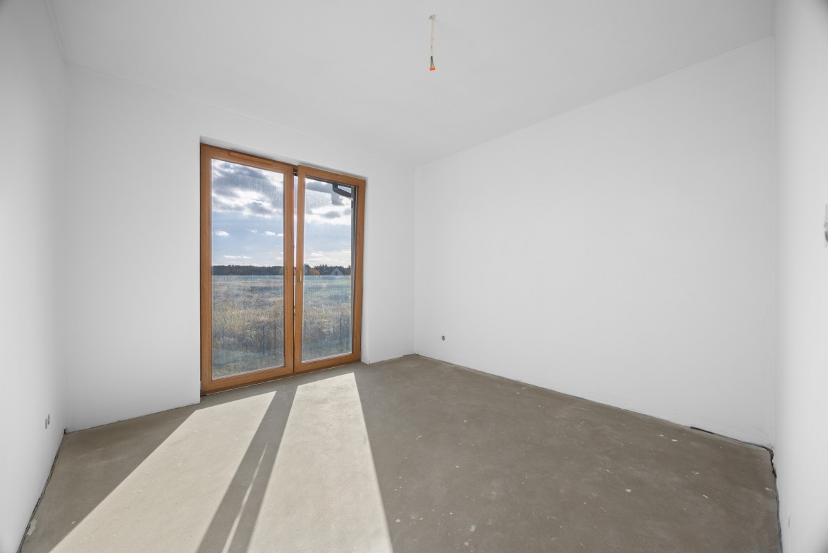 • Parter: salon z jadalnią i wyjściem na ogród, kuchnia, łazienka, pomieszczenie gospodarcze, wiatrołap, garaż.