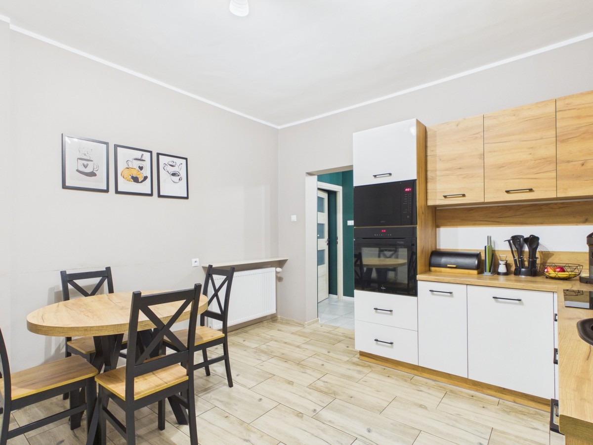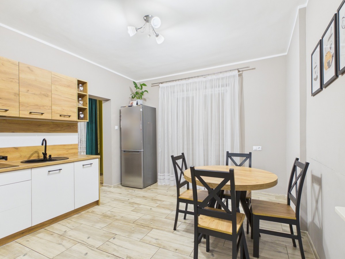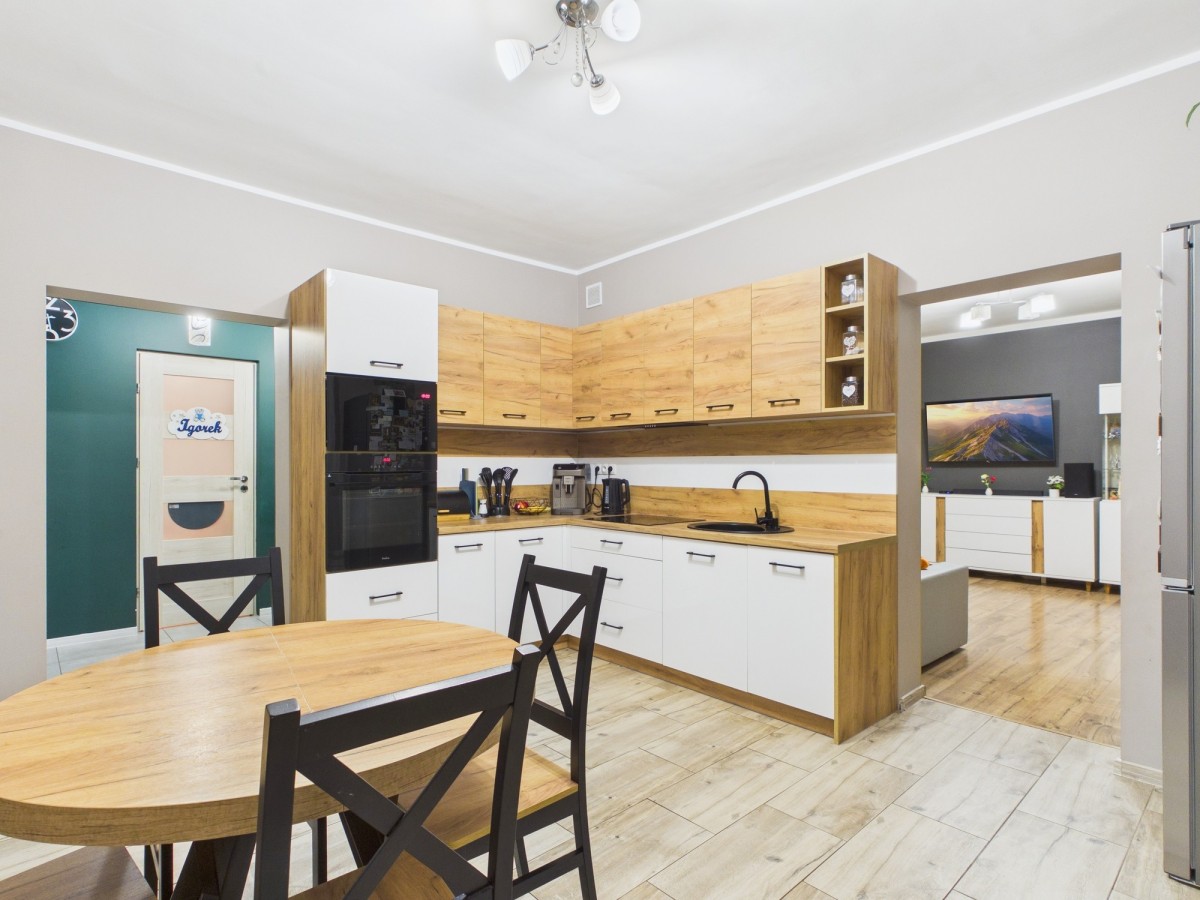 dom po generalnym remoncie (2022 r.) z nowymi instalacjami. Na płaskiej, prostokątnej działce 558 m² (29×19 m). W pełni ogrodzony i zadbany.