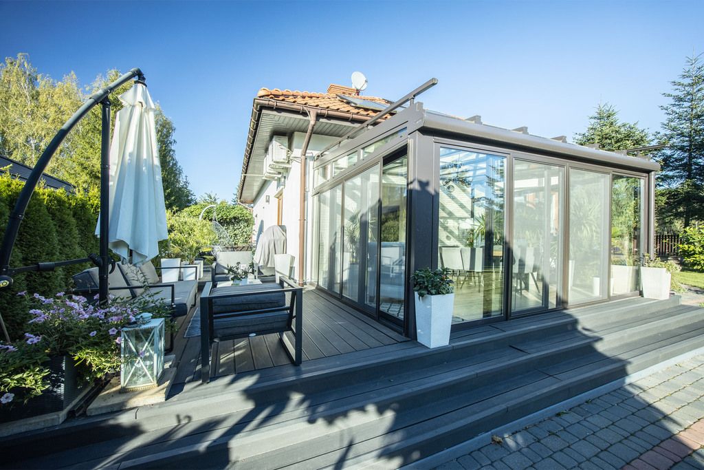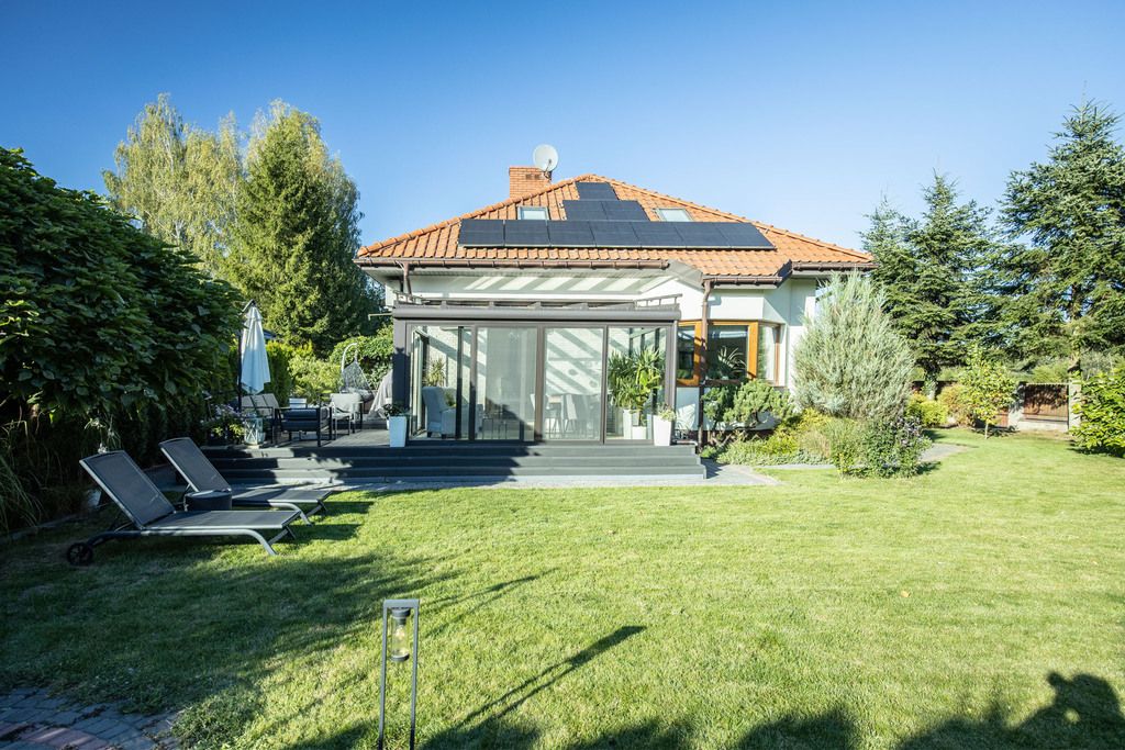 Oferta sprzedaży pięknego domu wolnostojącego z ogrodem zimowym i panelami fotowoltaicznymi.