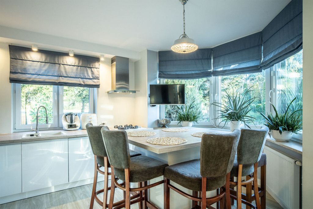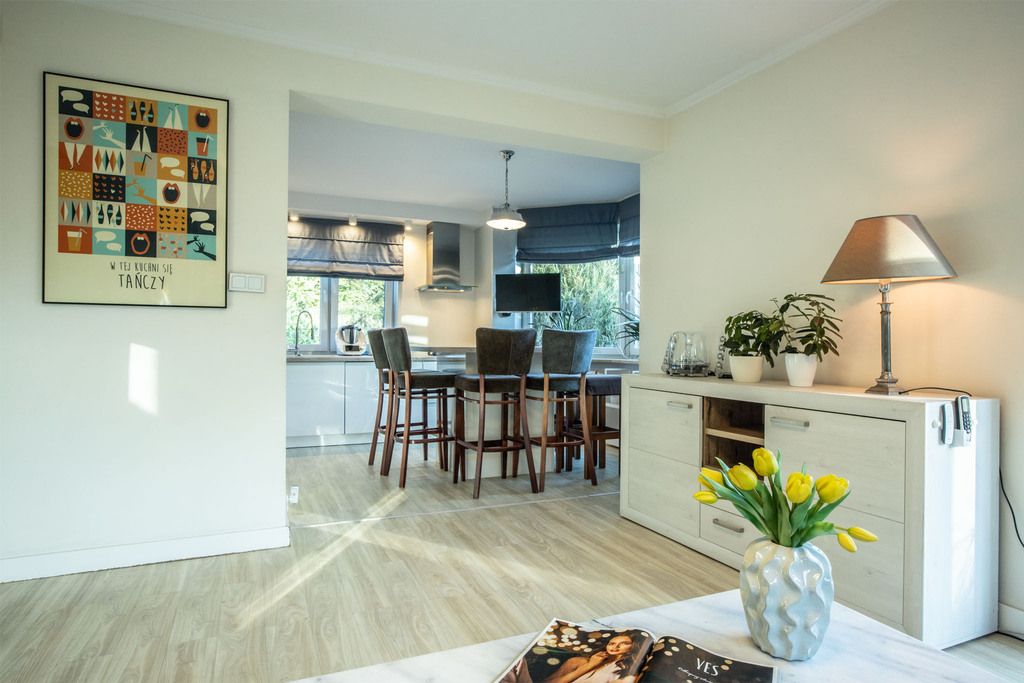 - Duża, otwarta kuchnia z jadalnią.