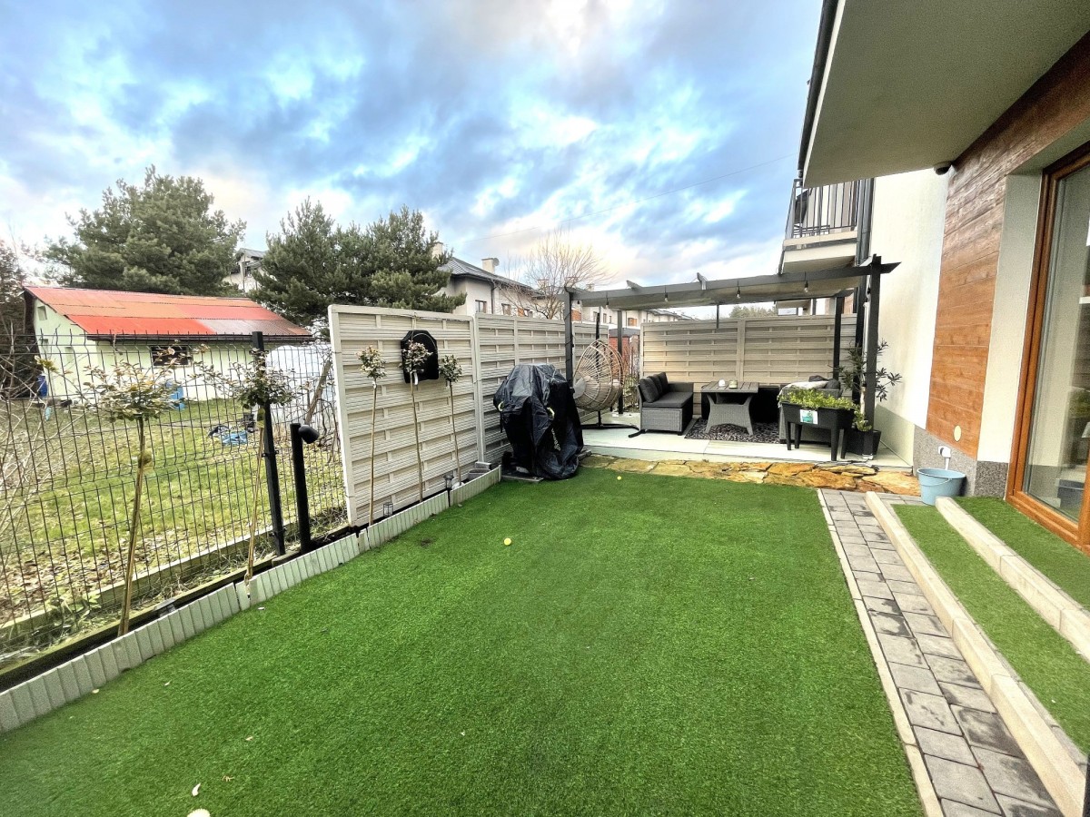 – Wyjście na zadbany ogródek osłonięty tujami, idealny do relaksu.- 45 m2