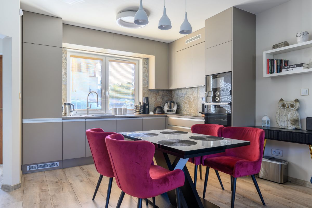 Dom wykończony w standardzie PREMIUM. W kwietniu 2024 roku wnętrza zostały odświeżone, w tym salon zyskał nową aranżację.