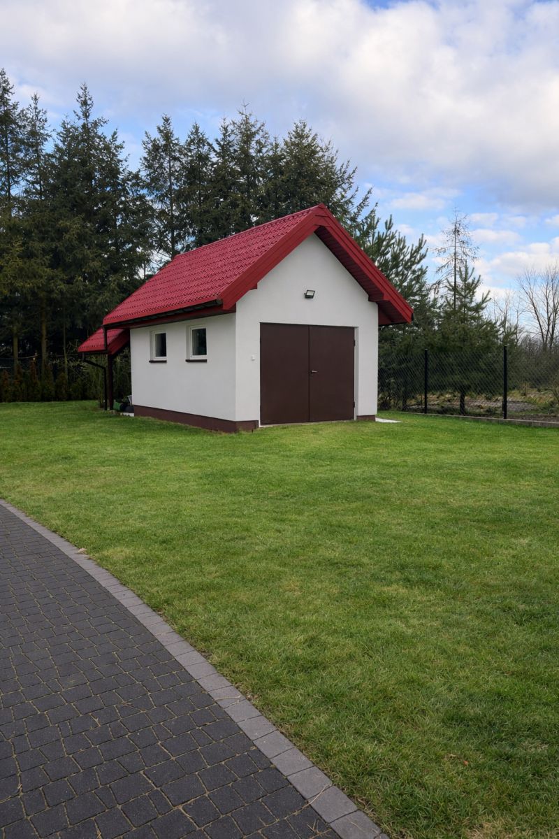 Dodatkowym atutem jest system automatycznego podlewania ogrodu, który ułatwia utrzymanie zieleni i pozwala zadbać o roślinność bez codziennej pracy.