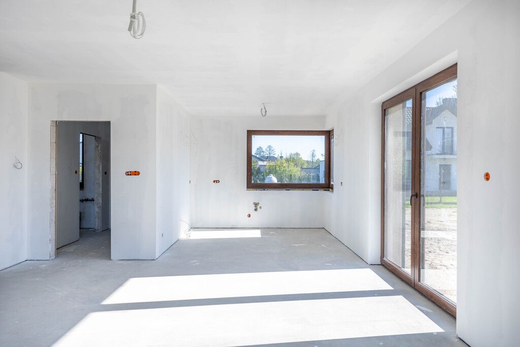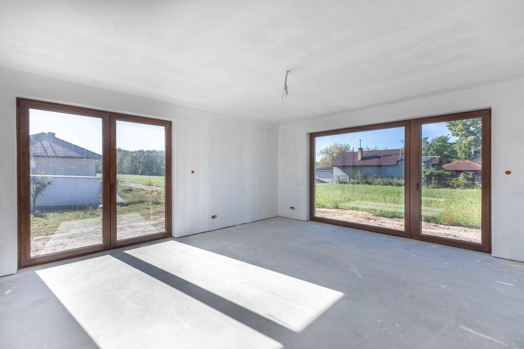 Budowa zakończona w 2025 roku, w technologii murowanej. Dom sprzedawany jest w stanie deweloperskim – gotowy, by nadać mu indywidualny charakter. Duże okna PCV doświetlają wnętrza, a dostęp do światłowodu zapewnia szybki internet w sercu natury.