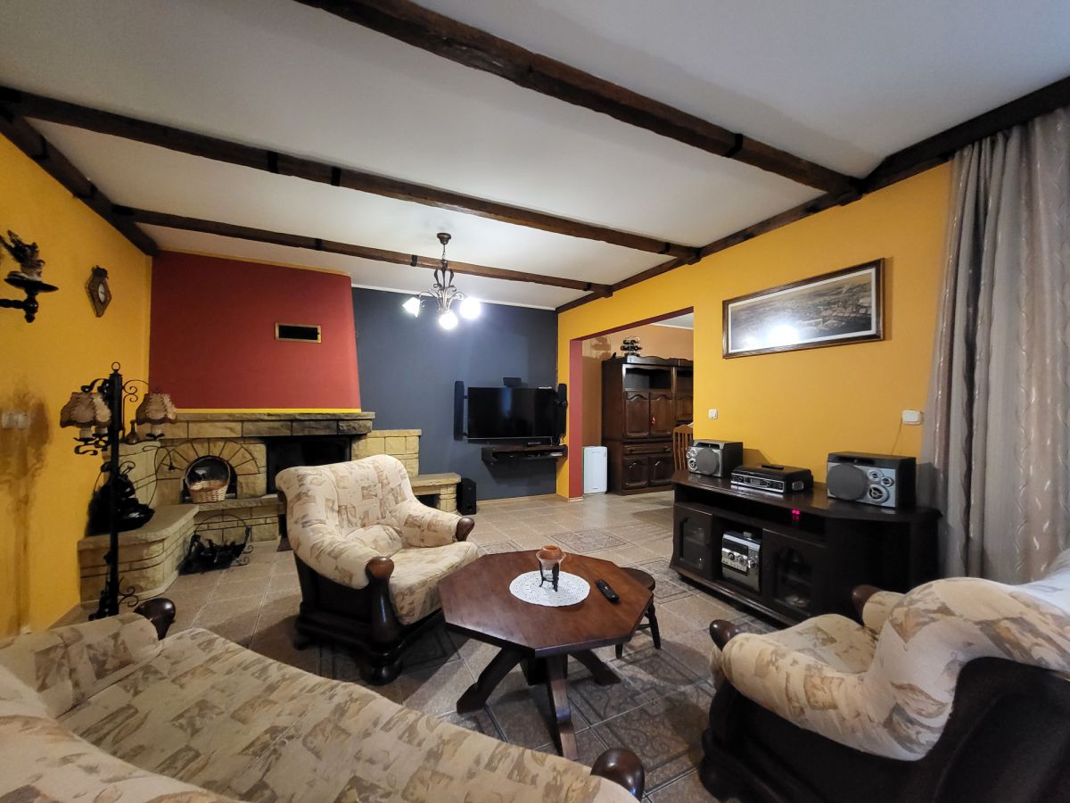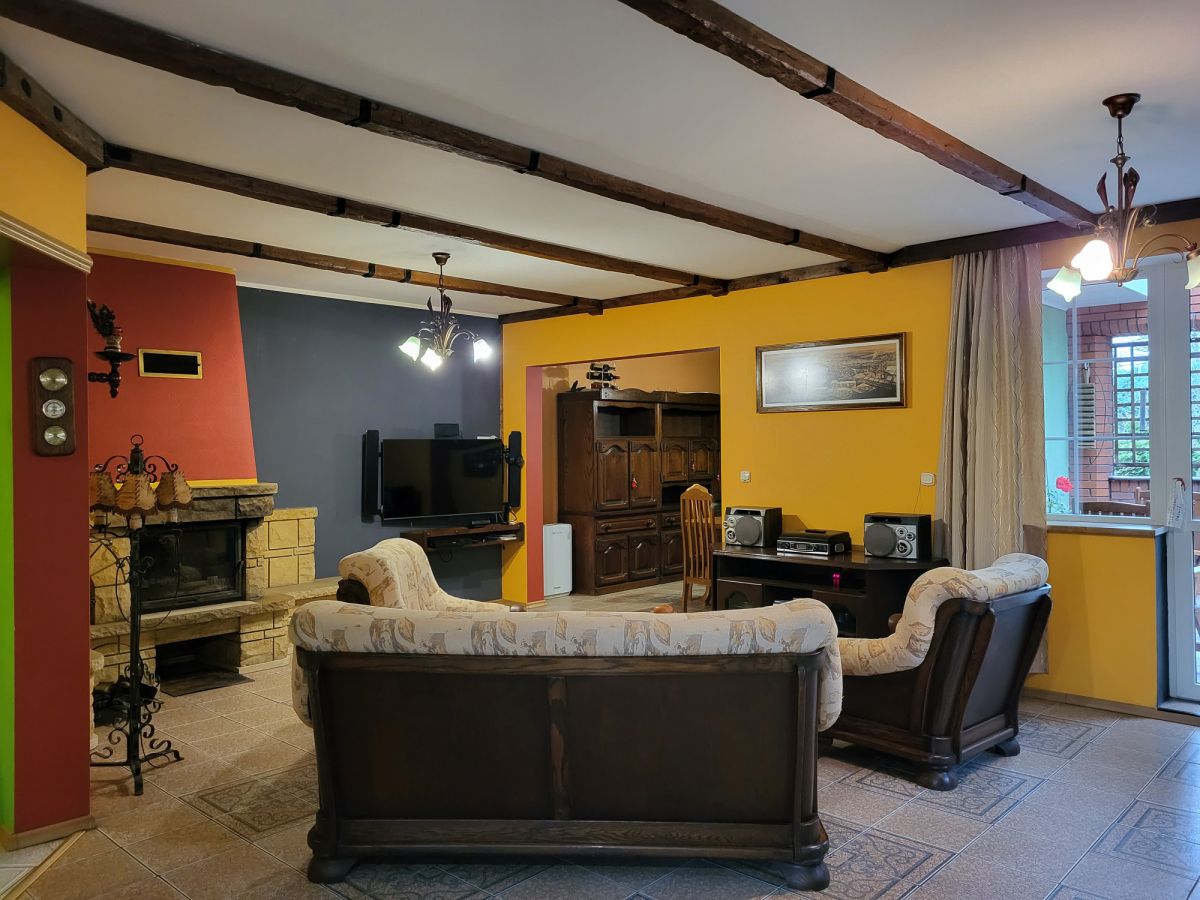 Przestronny pokój dzienny (21,10 m²) – serce domu z kominkiem
